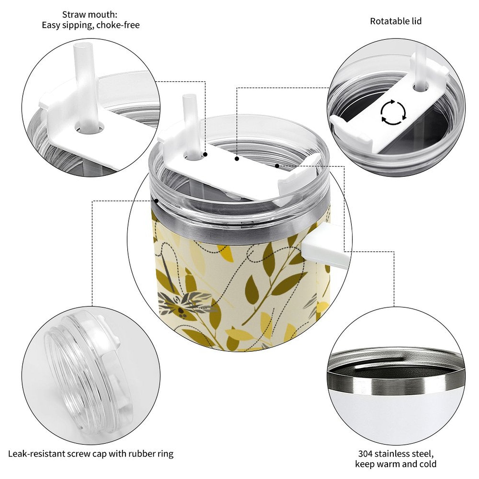 PHDT00190 POD US Local Tumbler 40 oz Large Capacity Car Cup Dragonflies, Prints, Leaves