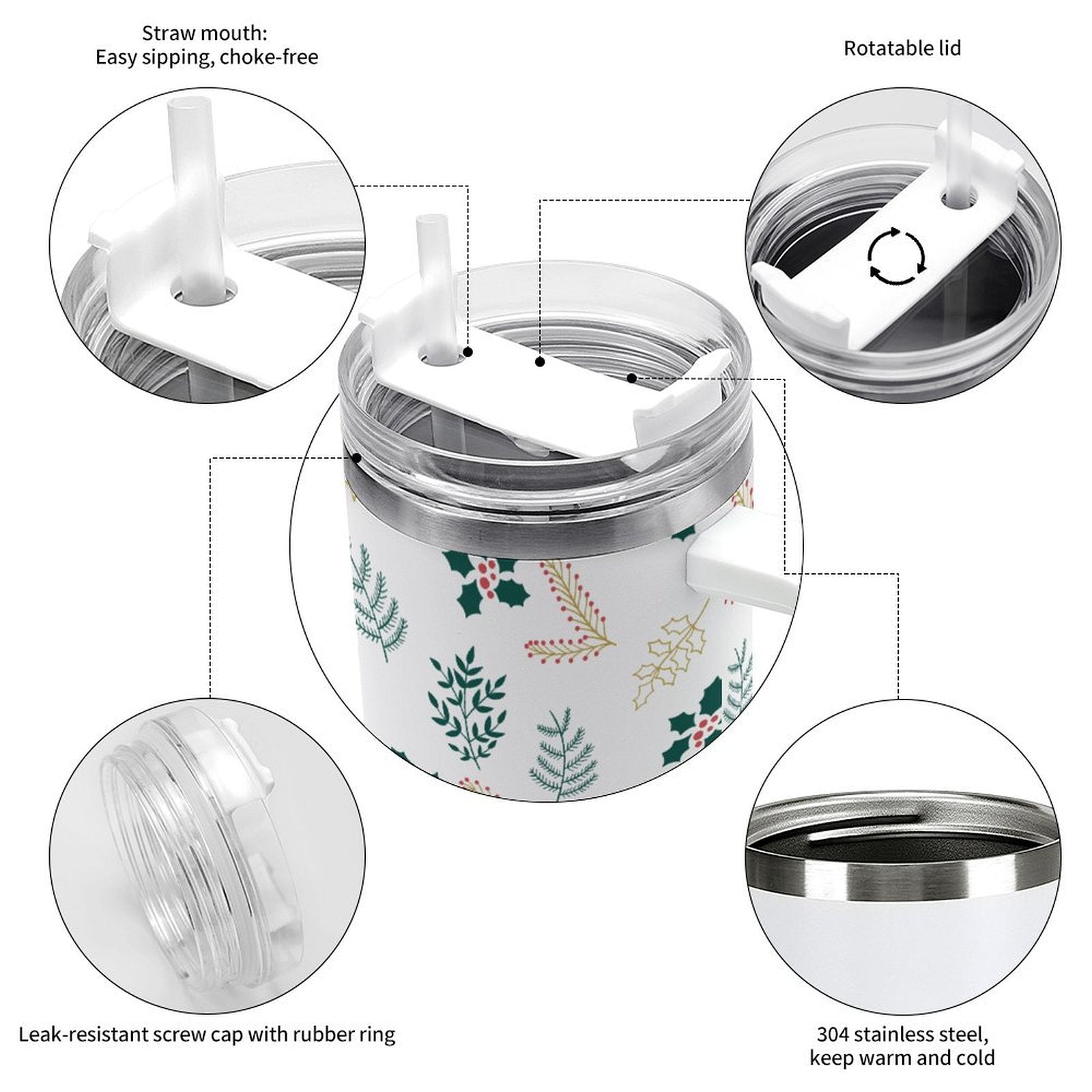 PHDT00296 POD US Local Tumbler 40 oz Large Capacity Car Cup Christmas Leaves