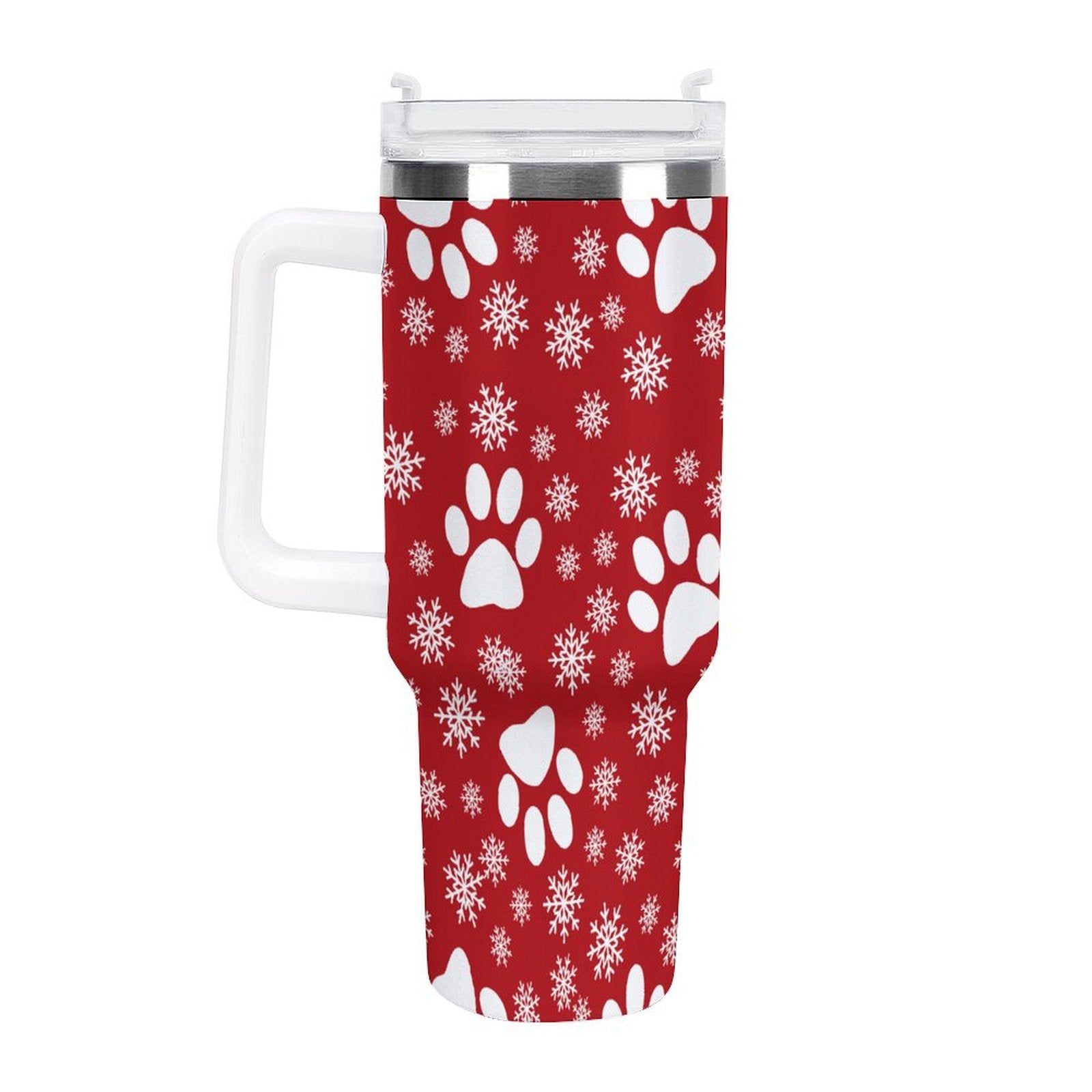 PHDT00313 POD US Local Tumbler 40 oz Large Capacity Car Cup Christmas Snowflakes Cats Dogs Paws Snowflakes Red