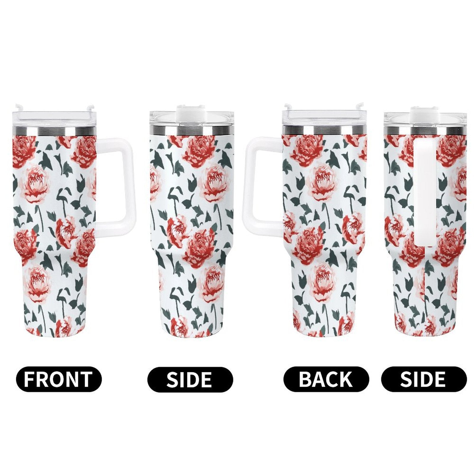 PHDT00421 POD US Local Tumbler 40 oz Large Capacity Car Cup Peony, Red, Flower