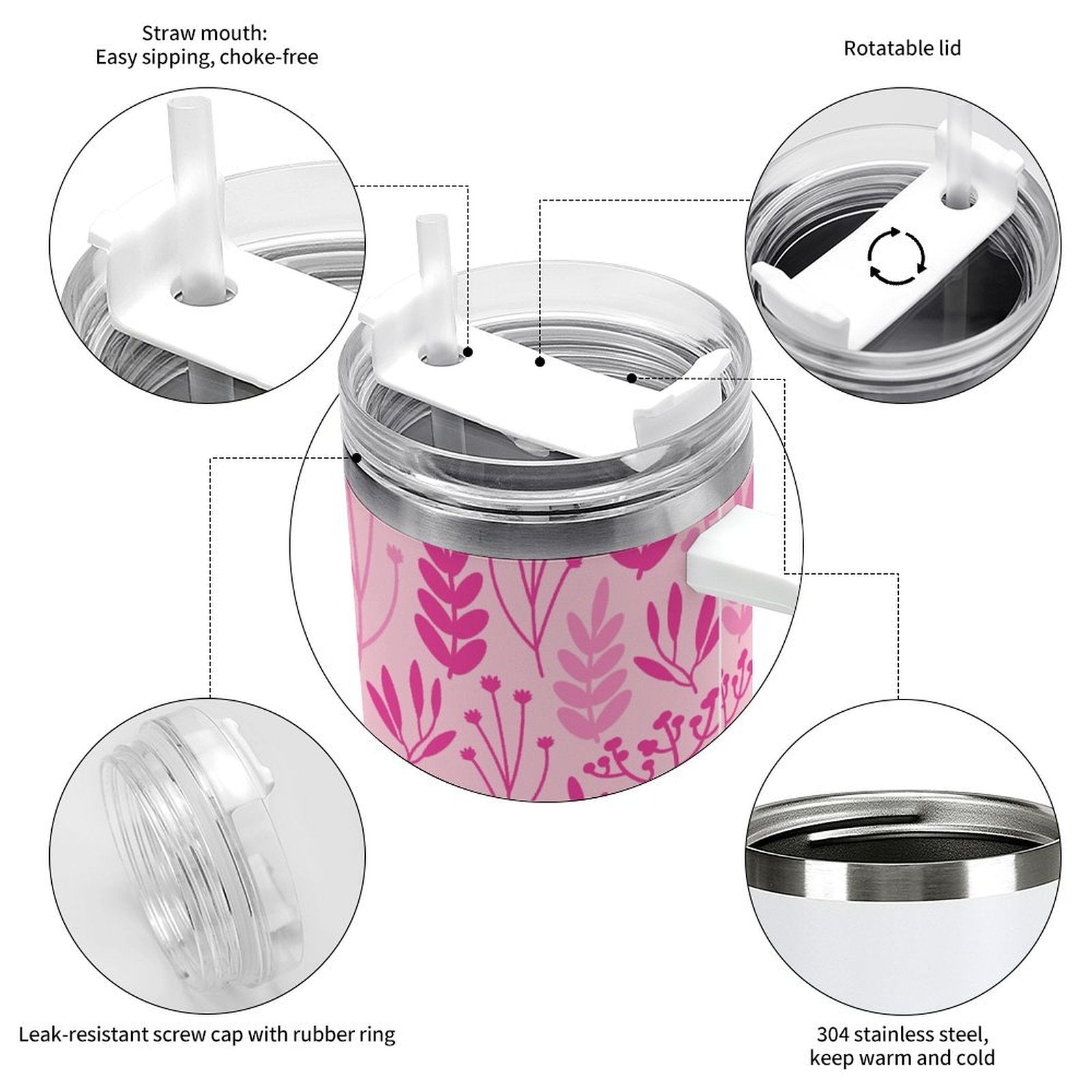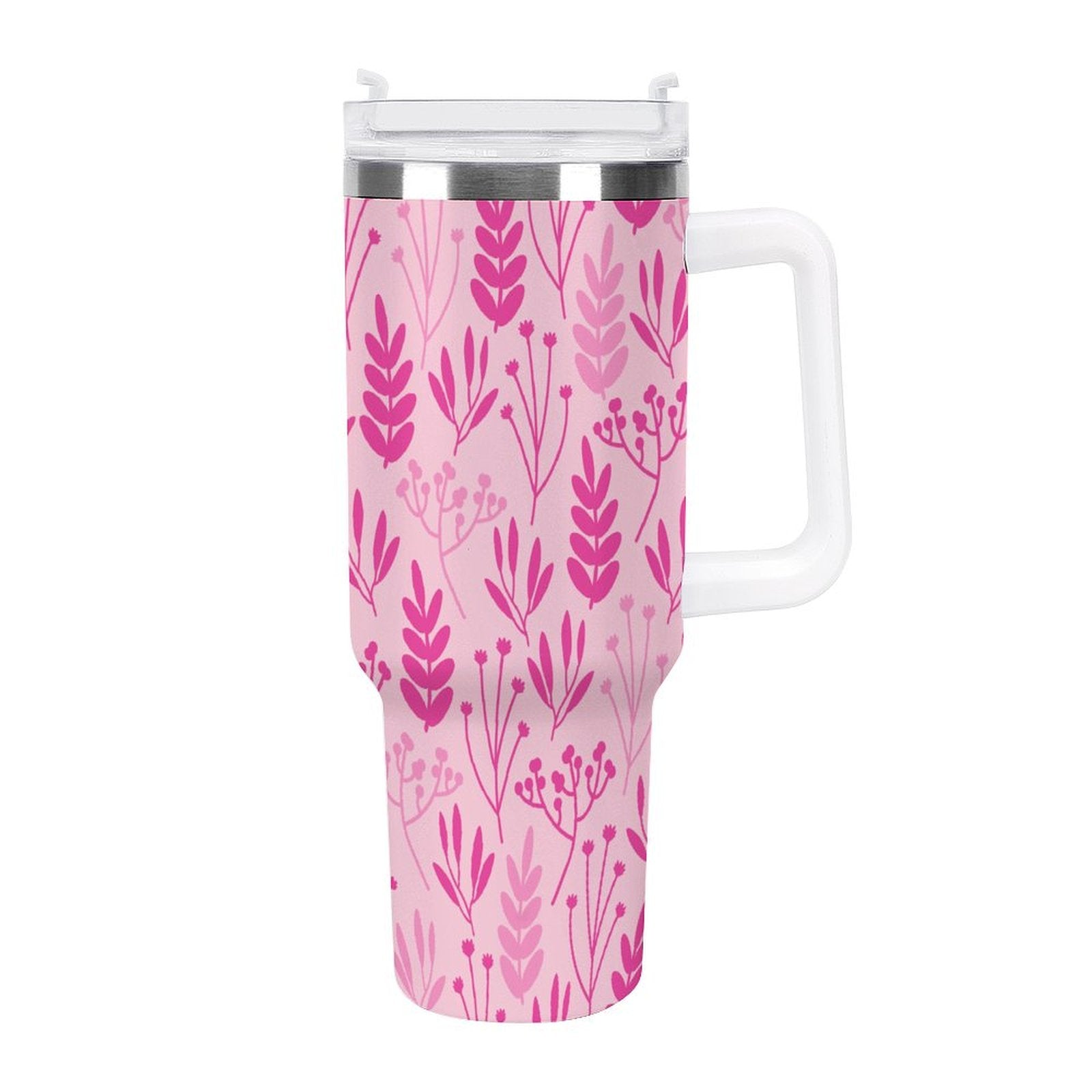 PHDT00422 POD US Local Tumbler 40 oz Large Capacity Car Cup Pink Flowers leaves