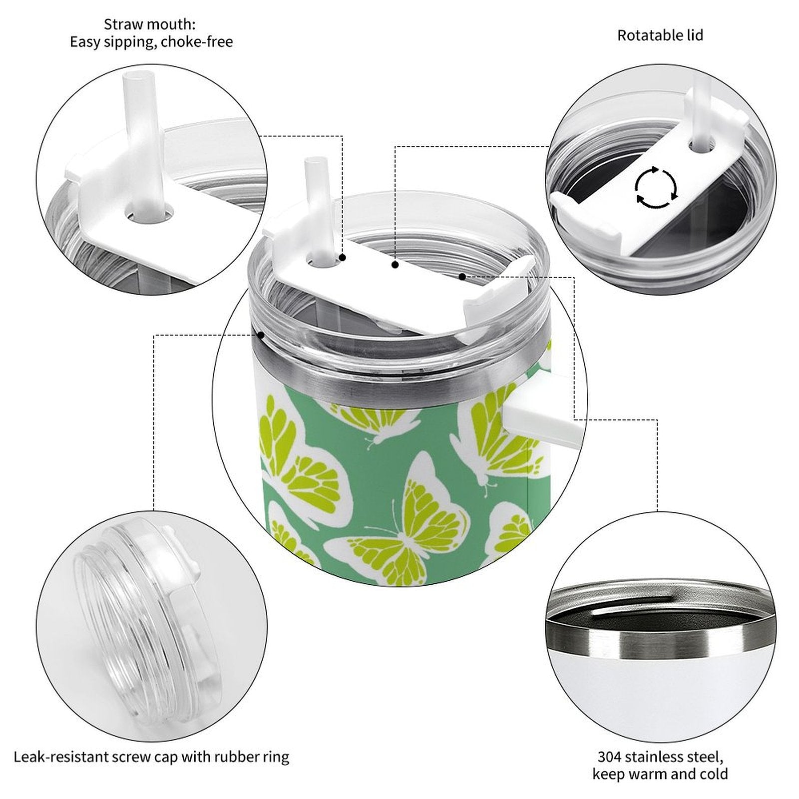 PHDT00523 POD US Local Tumbler 40oz Large Capacity Car Cup Green Butterfly