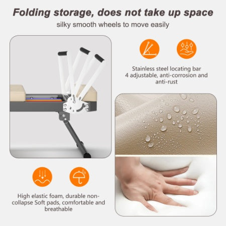 - High-Density Sponge Cushion, Durable & Comfortable:The high-density sponge cushion resists deformation, while eco-silicone leather is easy to clean and scratch-resistant. Paired with ultra-smooth glide rails, it ensures a comfortable workout for all poses.