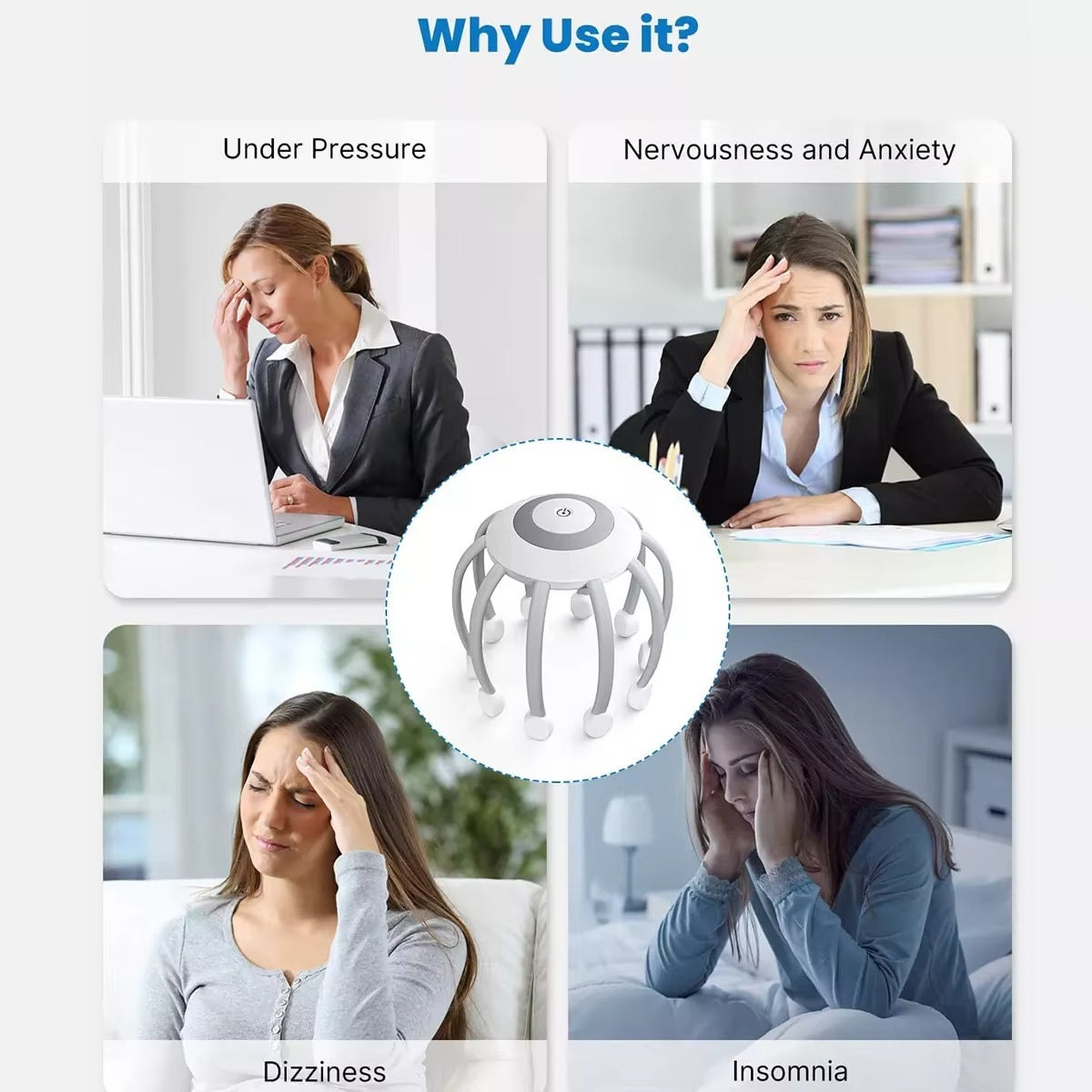 US Local Portable Octopus Electric Head Massager With 10 Detachable Claws 4 Modes Vibration Massage To Relieve Scalp Fatigue
