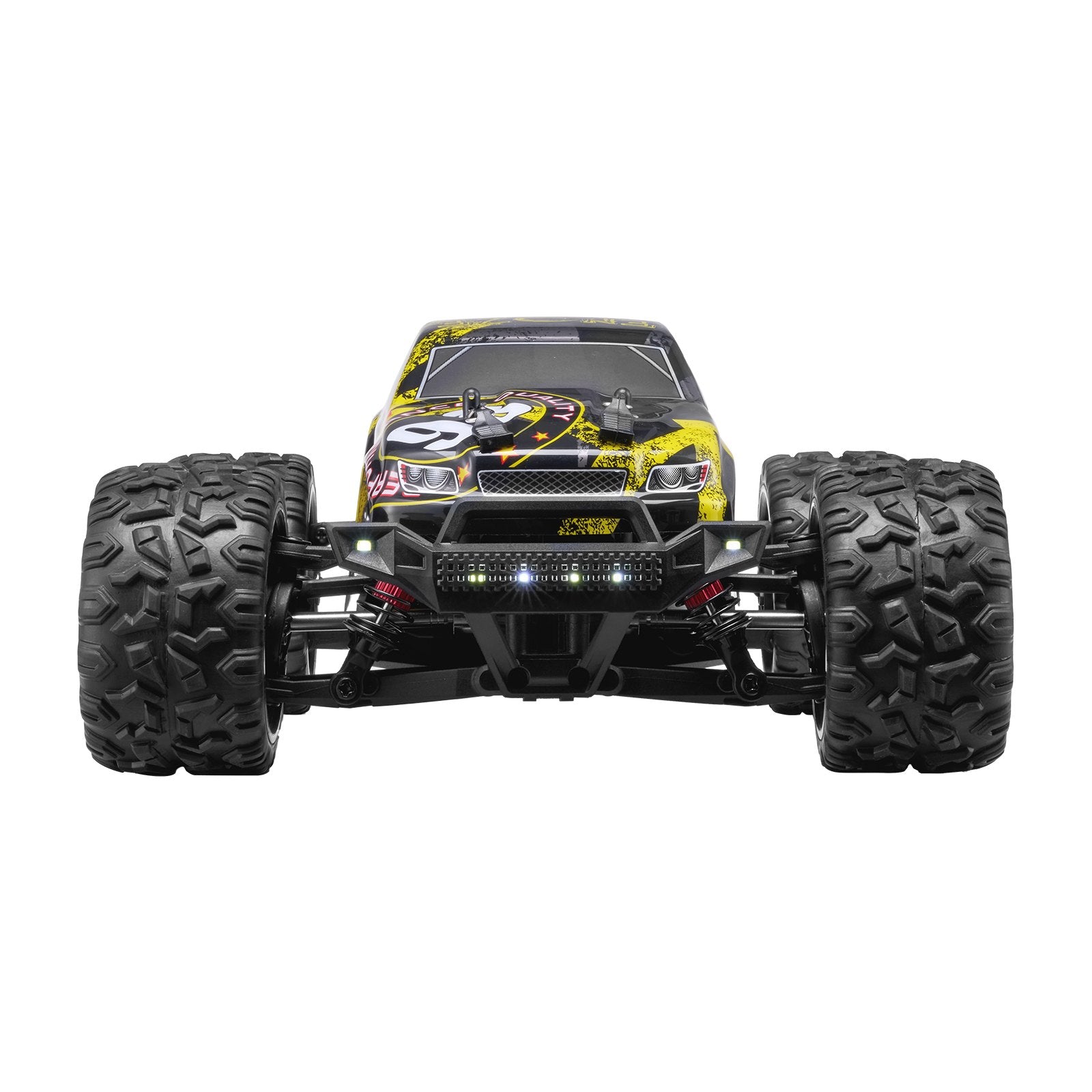 Ultimate Driving Fun: Upgraded with the wheelie bar, this RC off-road car can lift its front wheels up to 45¡ã, maintaining stability for awesome stunt performance. Combined with 45¡ã steering angle, high-precision servo, and hydraulic shock absorber, it navigates sharp turns, climbs steep slopes, and handles rough terrains with ease, delivering an unmatched racing experience.