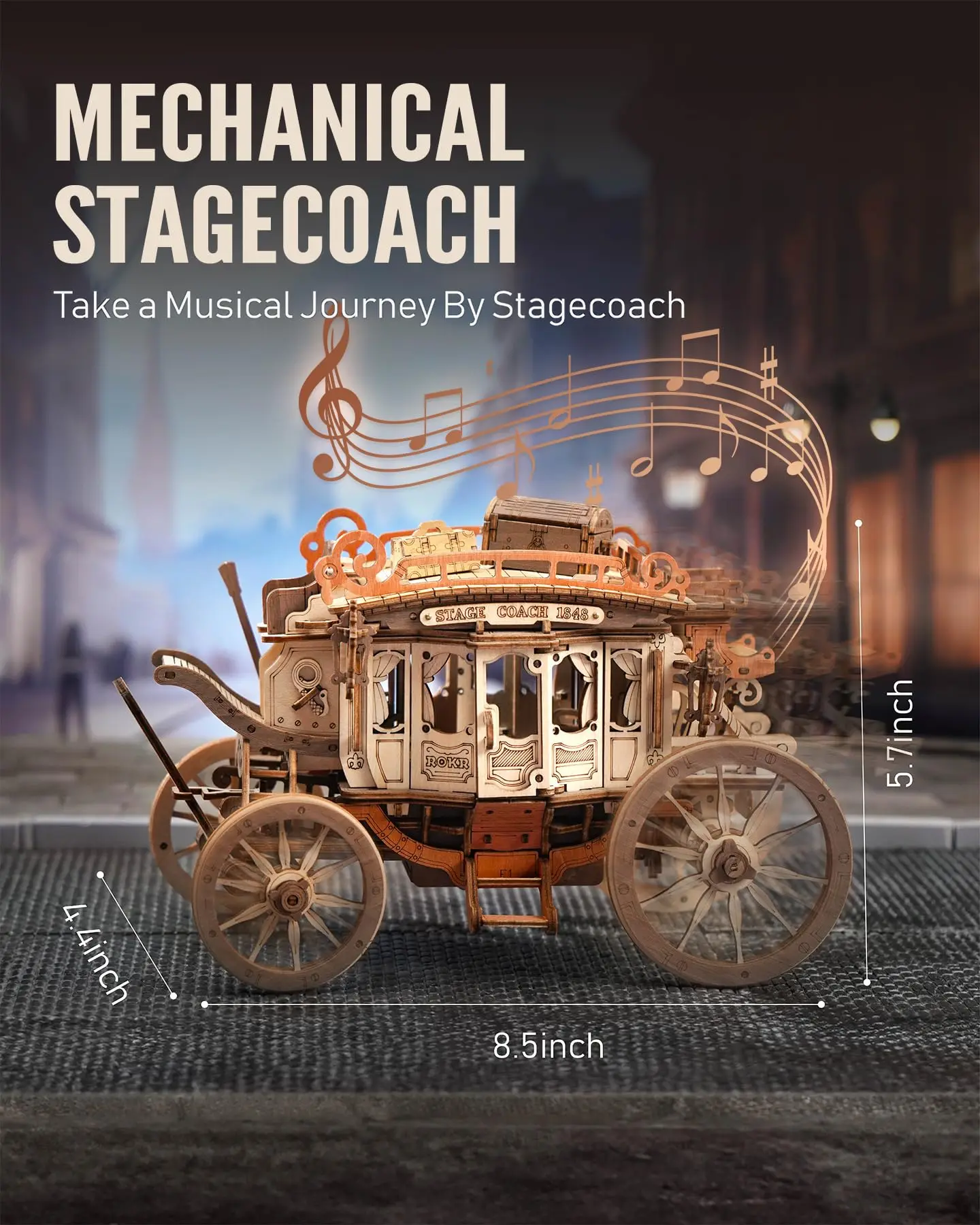 US Local Robotime Rokr Stagecoach Music Box 3D Wooden Puzzle For Adults Birthday Anniversary Day Gift Hobby STEM Kits Model Easy To Build