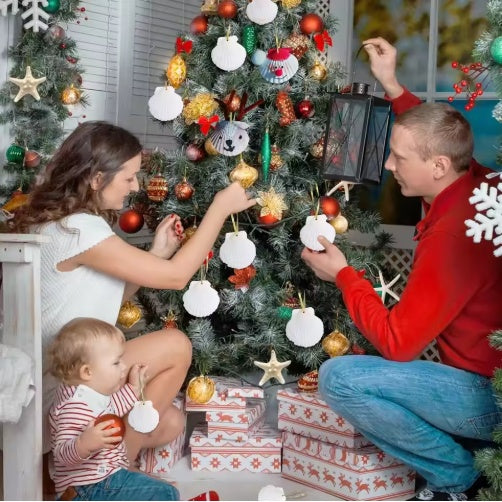 ?- Gifts from nature, sea shells for decorating makes your Christmas tree decoration unique from others. If you are going to have a new Christmas tree with a beach theme, those hanging seashells christmas ornaments set will be perfect!