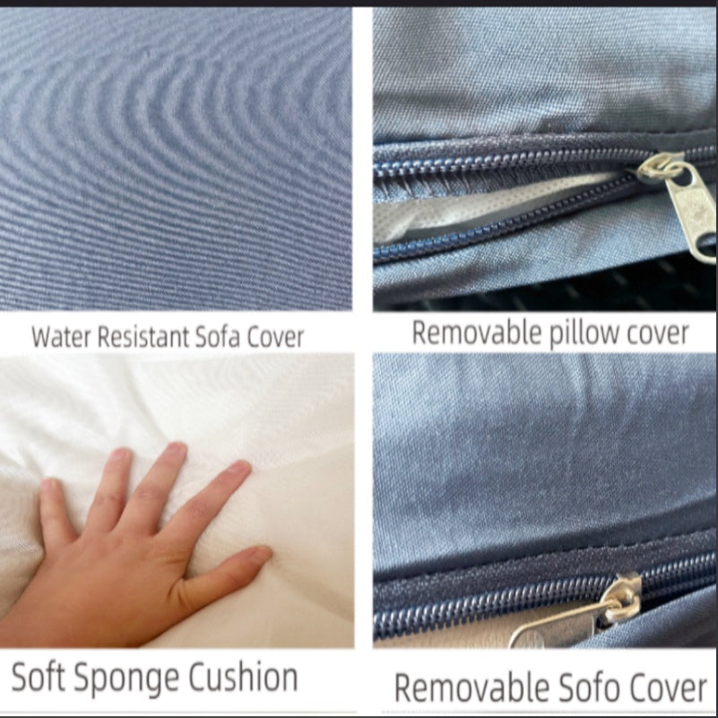 - 7-piece set of black rattan with blue cloth cover:PE+metal frame, galvanized pipe 15*15*0.7MM, black rattan 9*0.95, cushion 10CM250D, fabric 202g polyester waterproof cloth, back padding 1.1KG, 5MM tempered glass