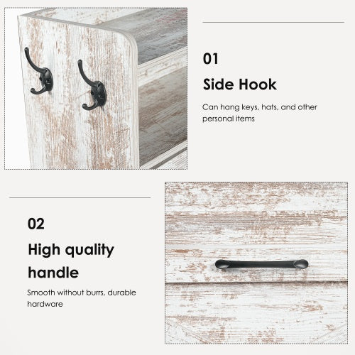 - Featuring a classic farmhouse style, this shoe storage cabinet comes with 2 flip drawers, each designed with 2 layers of adjustable shoe slots to accommodate a variety of shoe sizes. The drawers can also be removed, offering customizable storage solutions for your home.