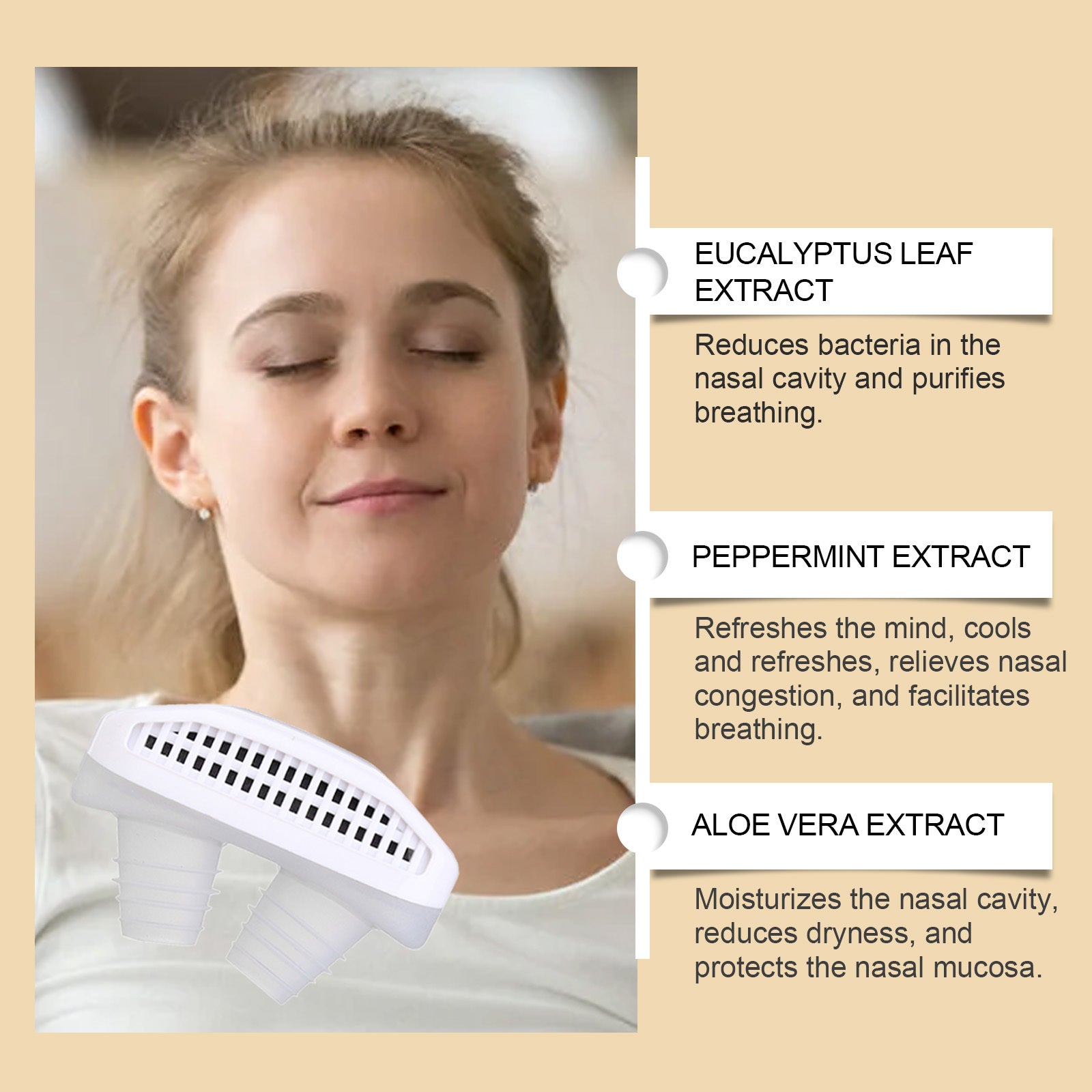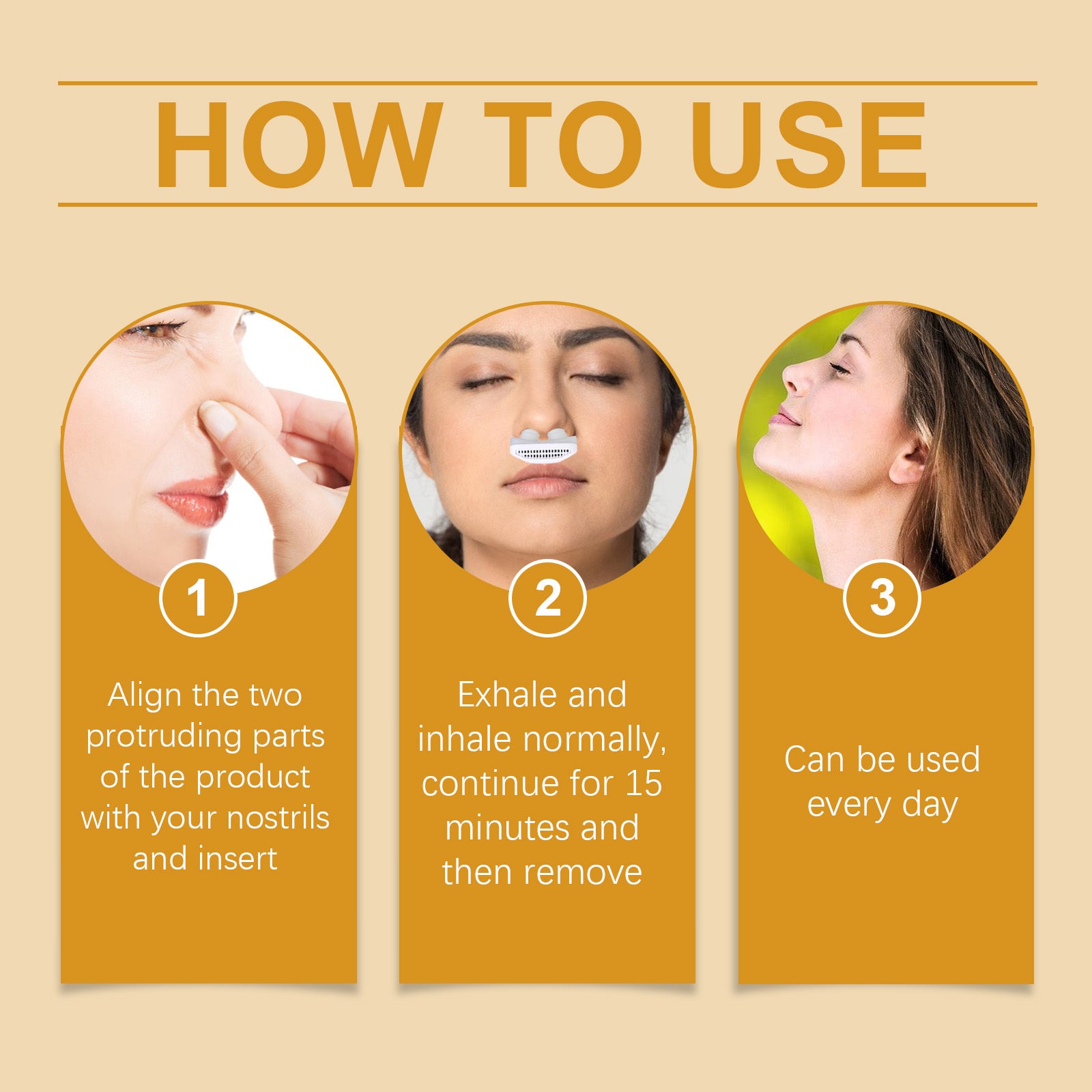 Our nose care devices contain eucalyptus leaf extract, peppermint extract, aloe vera extract. It reduces bacteria in the nasal passages and cleans your breath. Refresh and refresh, cool and refresh, relieve nasal congestion, promote breathing. Moisturize the nasal cavity, reduce dryness and protect the nasal mucosa. Its use method is simple: 1. Align the two protruding parts of the product with the nostril and insert; 2. Exhale and inhale normally for 15 minutes, then move away; 3. It can be used daily. Adjust the concentration of ingredients to ensure optimal results and improve comfort. Breathe fresh air to protect nasal health and improve breathing.