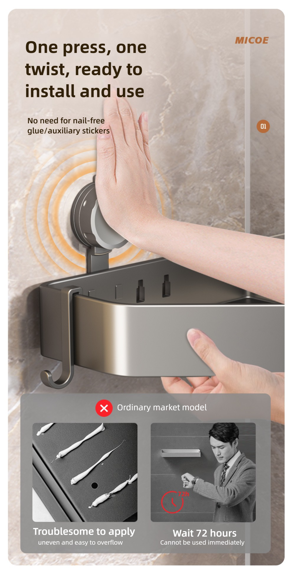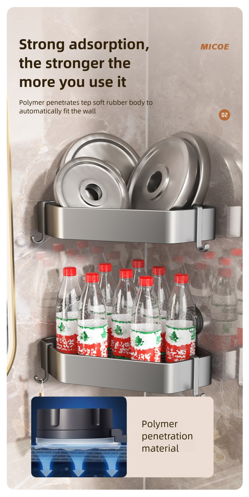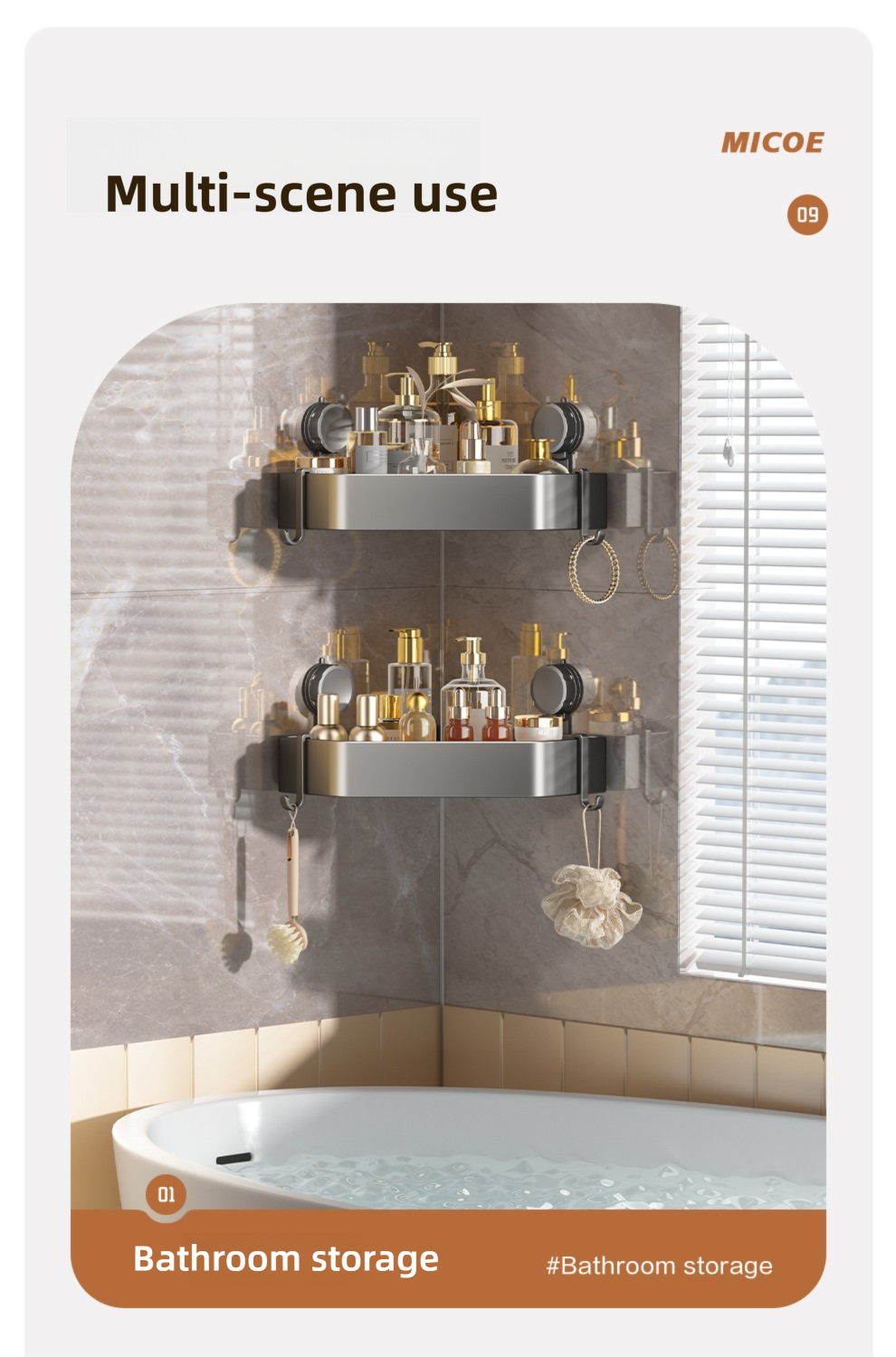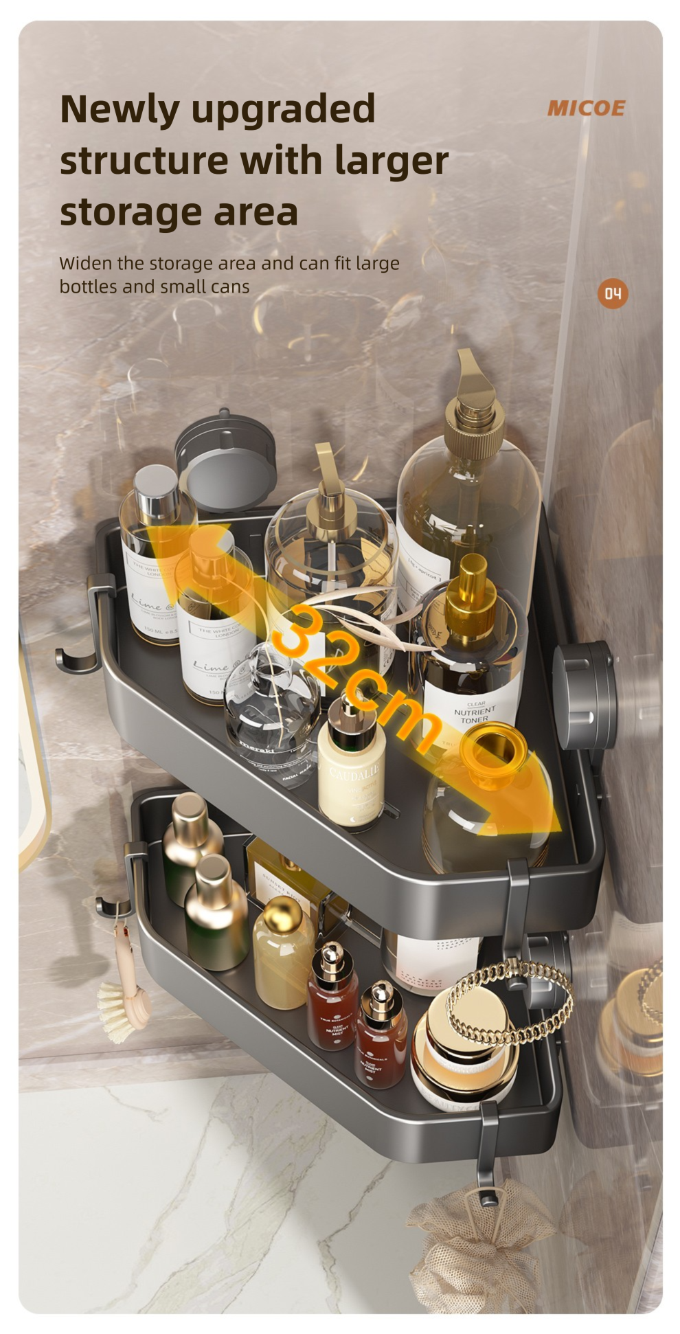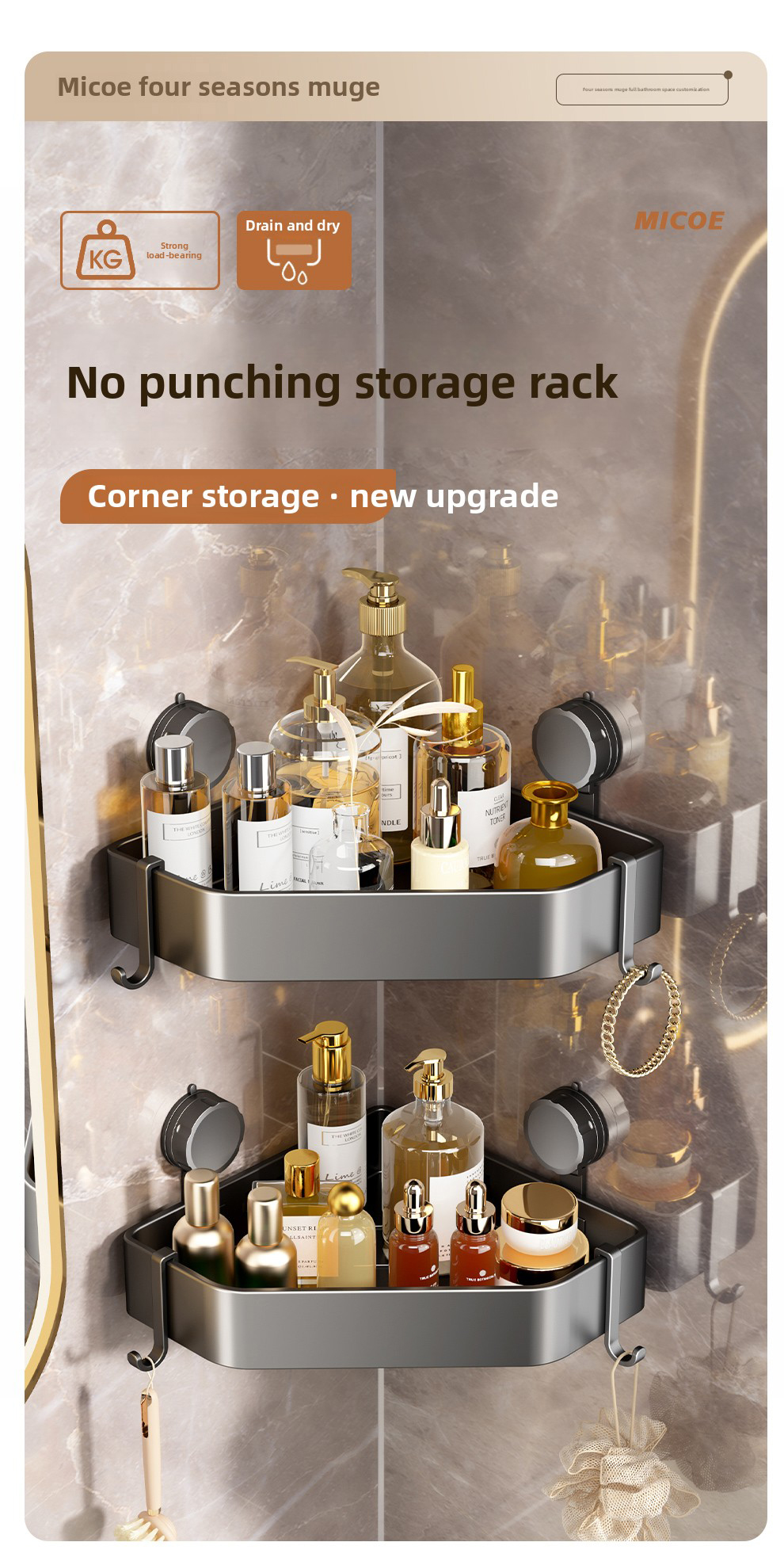 Corner shower rack - no need to drill holes, rust proof aluminum alloy, saving space. Strong suction cup diamond design bathroom shelf storage box (2-piece set - gun metal gray) (1-piece set with hook)