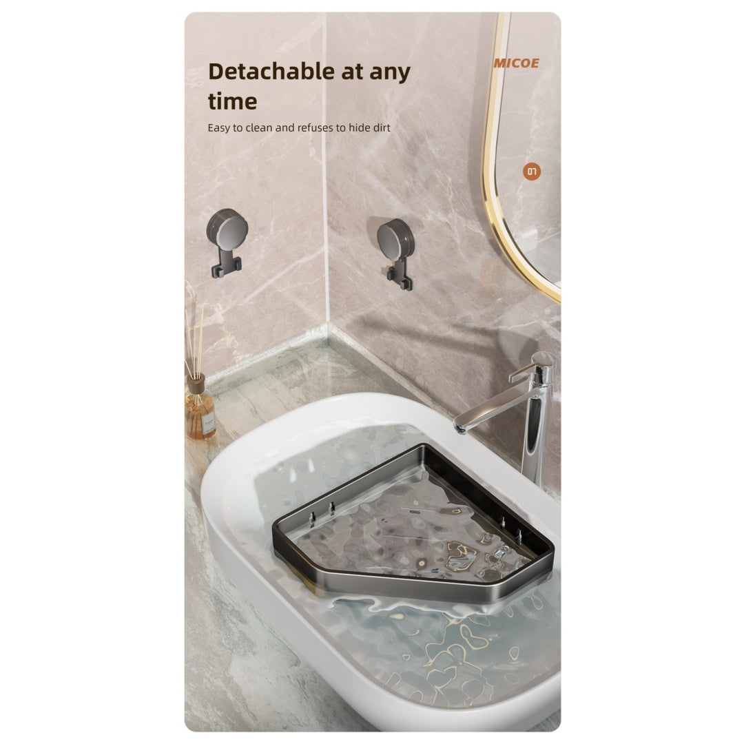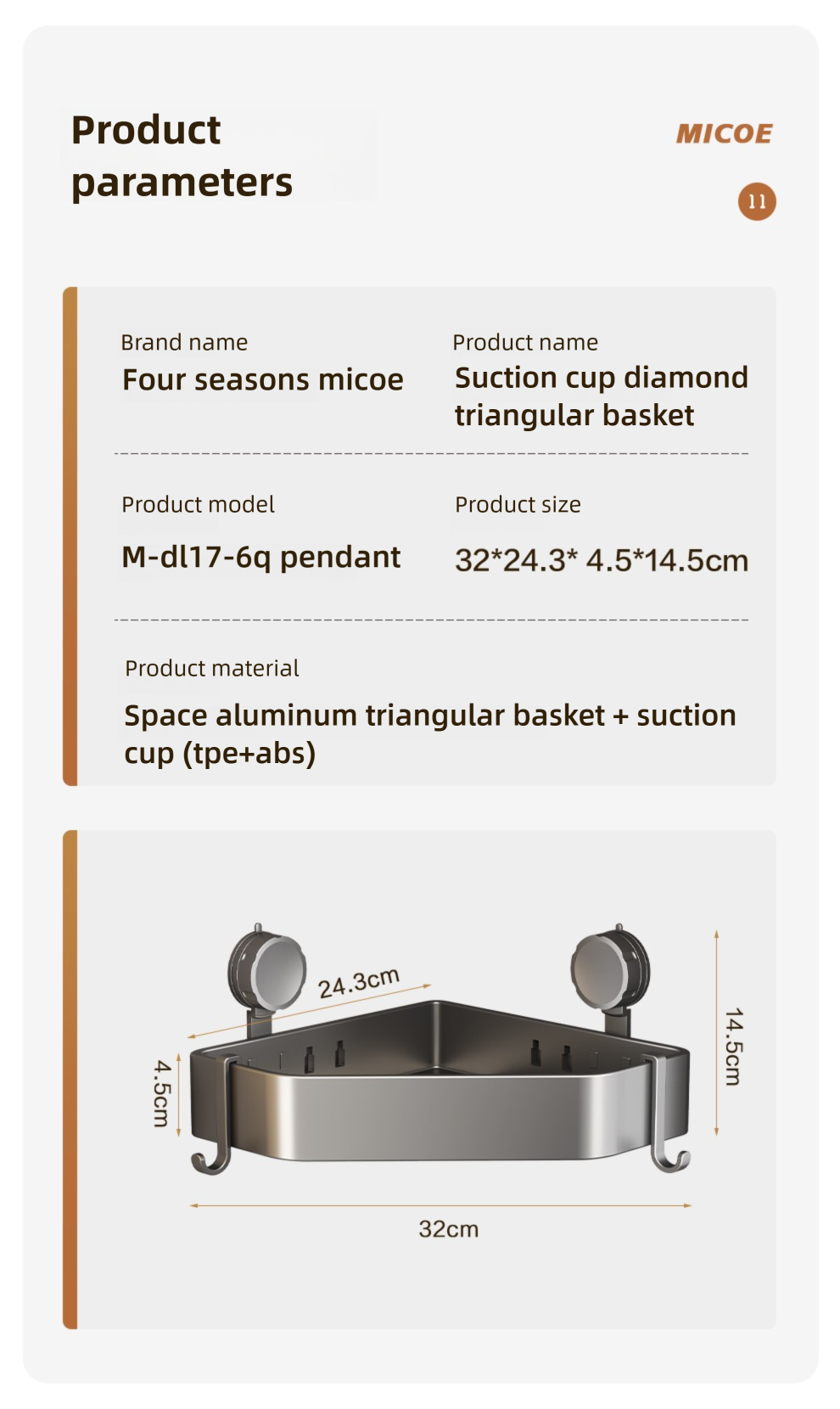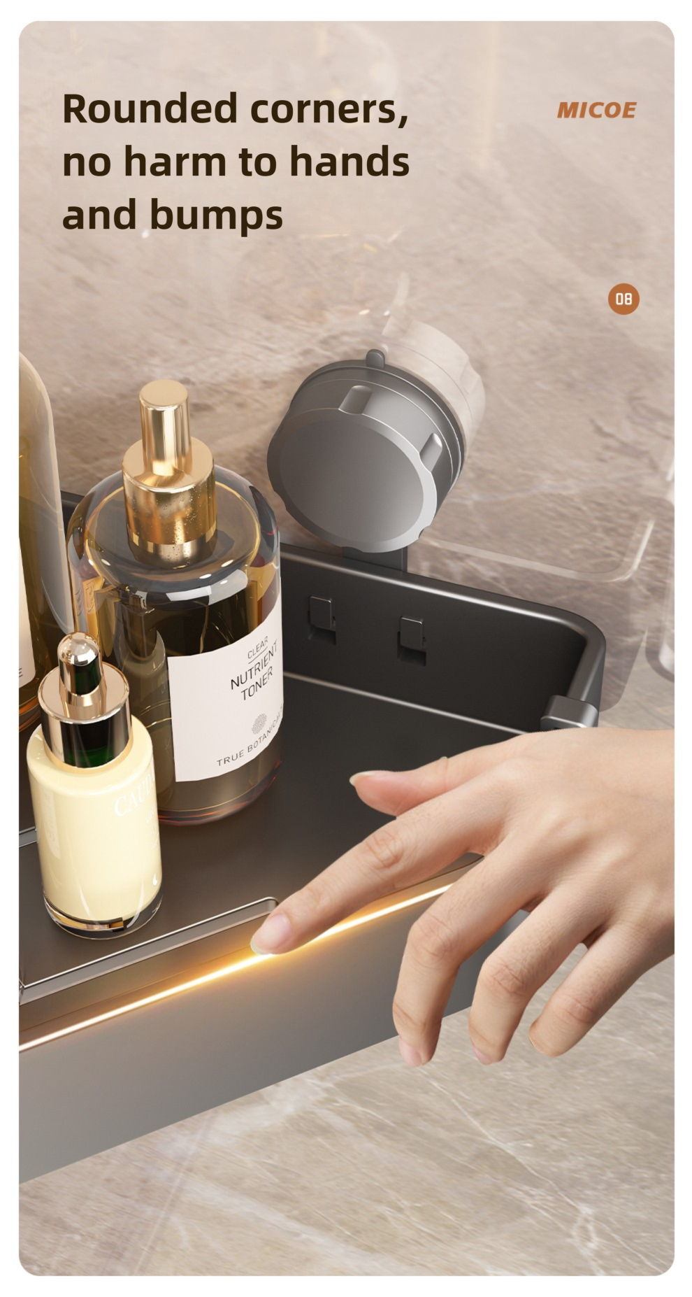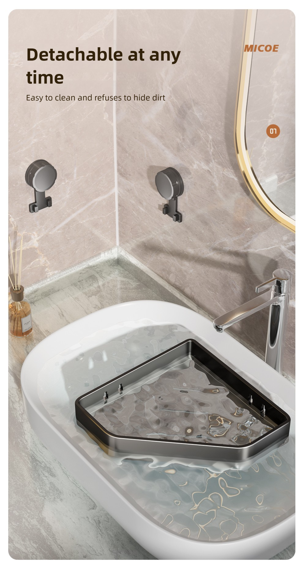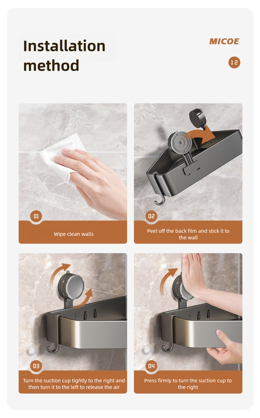 Corner shower rack - no need to drill holes, rust proof aluminum alloy, saving space. Strong suction cup diamond design bathroom shelf storage box (2-piece set - gun metal gray) (1-piece set with hook)