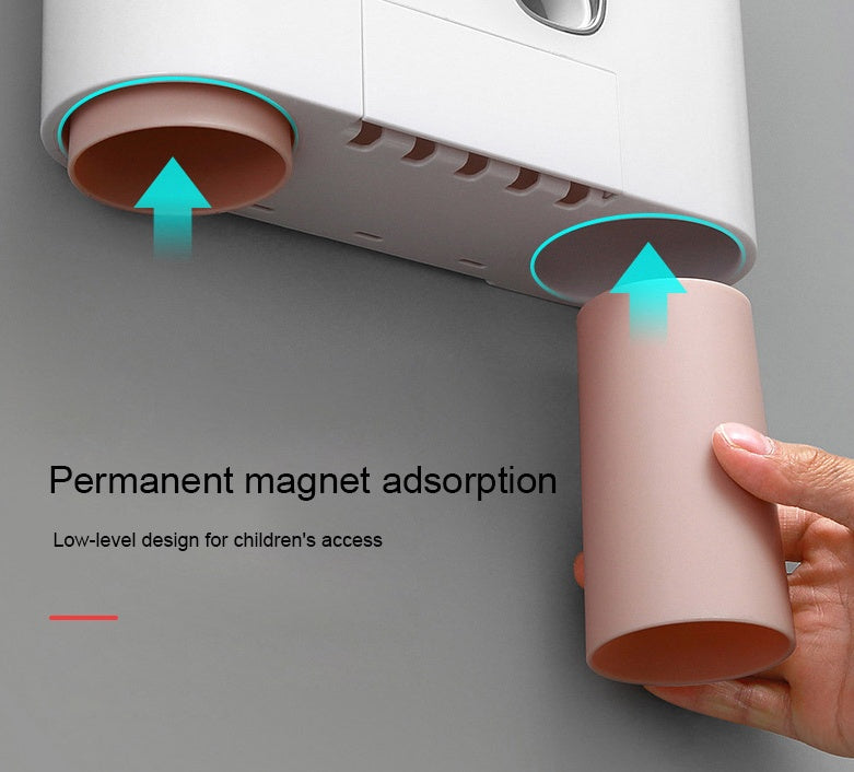 Four cups - Happy House, a collection of toothpaste, mouthwash and toothbrush in one, a four-piece wash suit. Four cups, one family of four, one cup; double-crowding, can be used by adults and children; the groove is placed to facilitate the placement of small items. The cup is divided into two large cups, two small cups, and a small cup for children. Don't be afraid that the child can't catch the cup. The magnetic suction cup is used to make the water cup inverted, so that the water can flow out. The structure is easy to disassemble and easy to clean. It is free from nails and is placed on the wall to save bathroom space and make rational use of free space. Three colors are available, allowing you to choose one more color.?