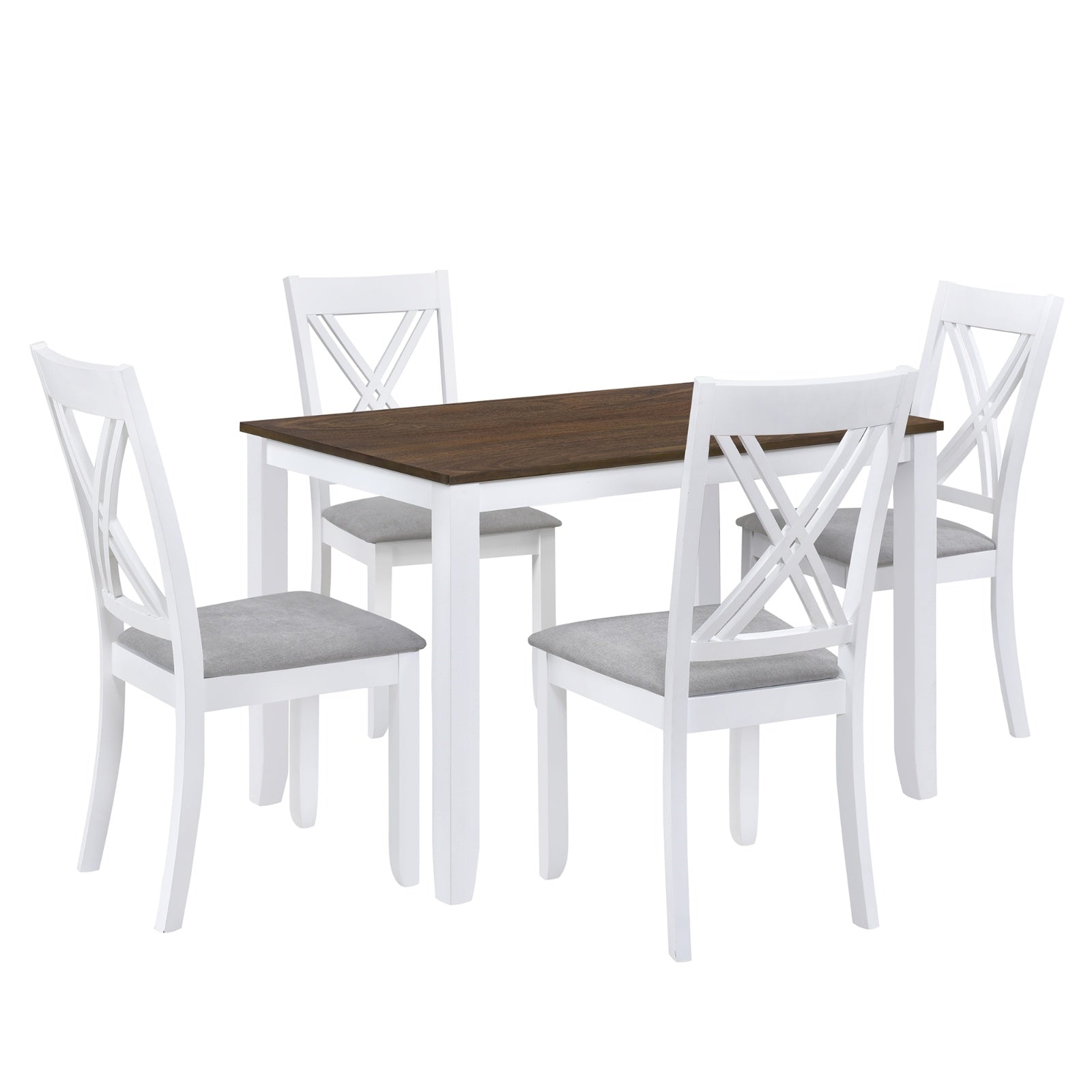 TOPMAX Rustic Minimalist Wood 5-Piece Dining Table Set with 4 X-Back Chairs for Small Places, White