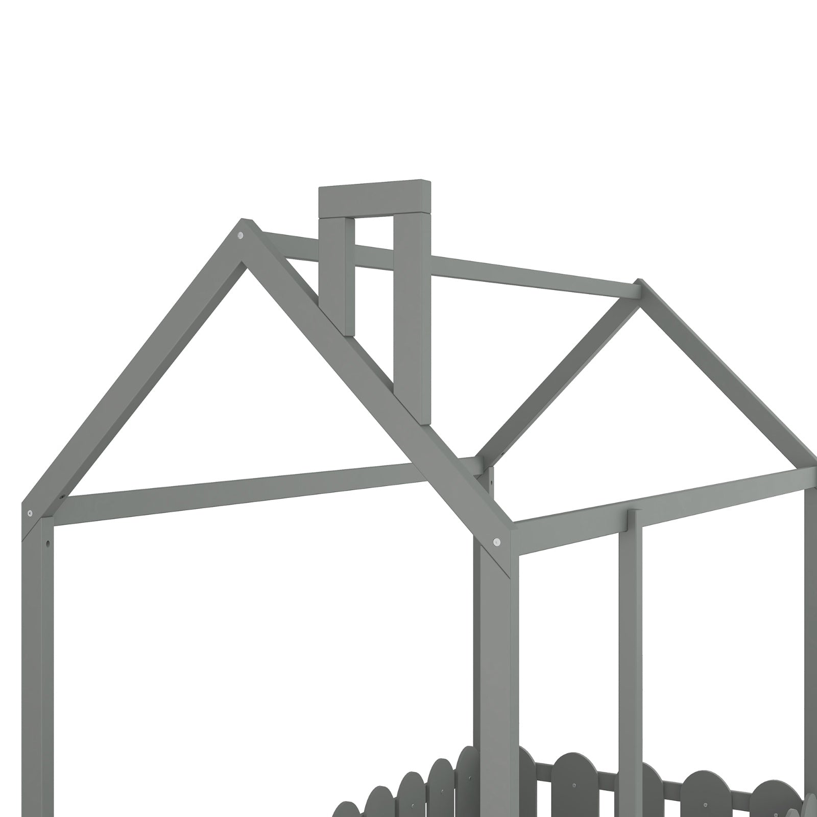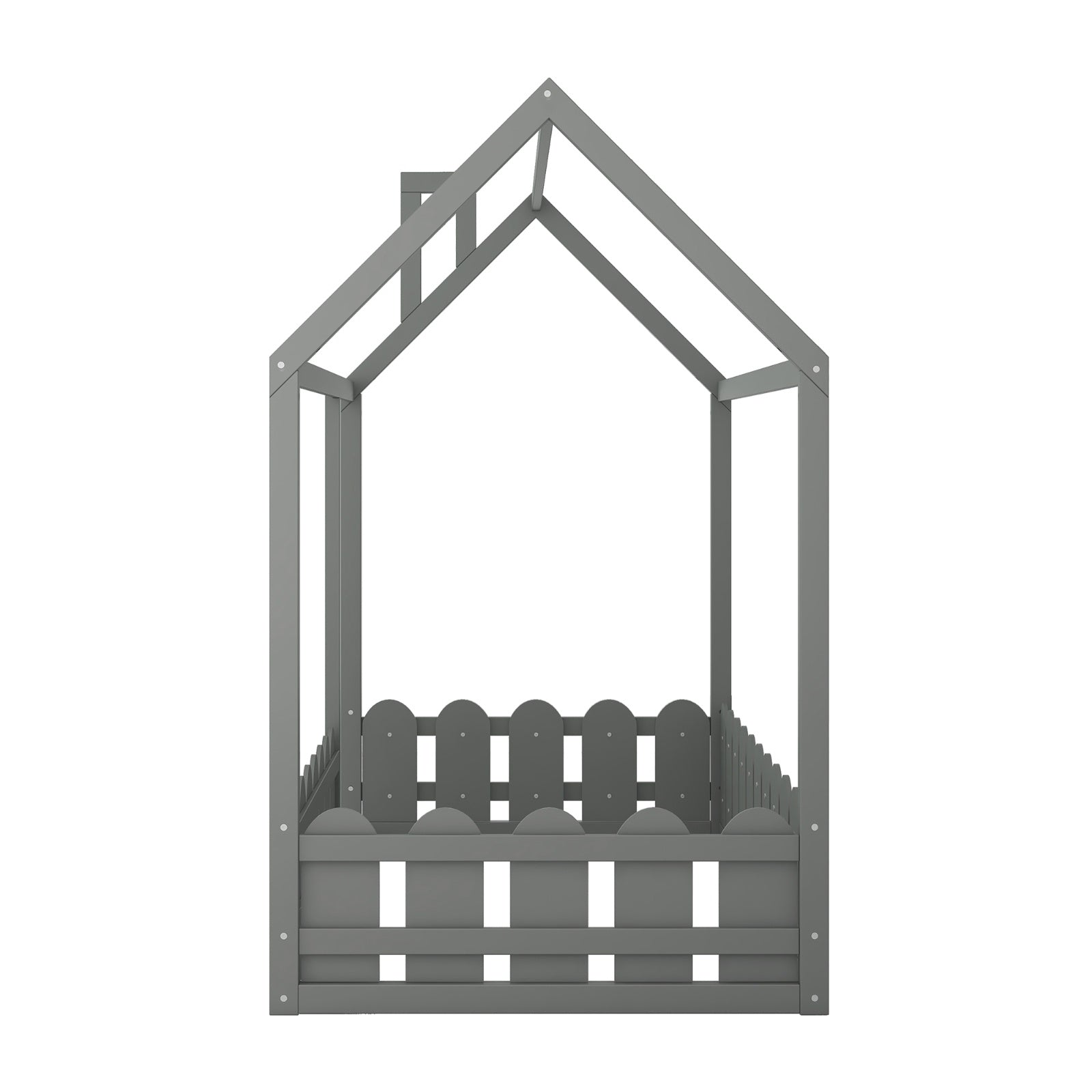 {Slats are not included}Twin Size Wood Bed House Bed Frame with Fence,for Kids,Teens, Girls,Boys {Gray}{OLD SKU:WF194274AAE}