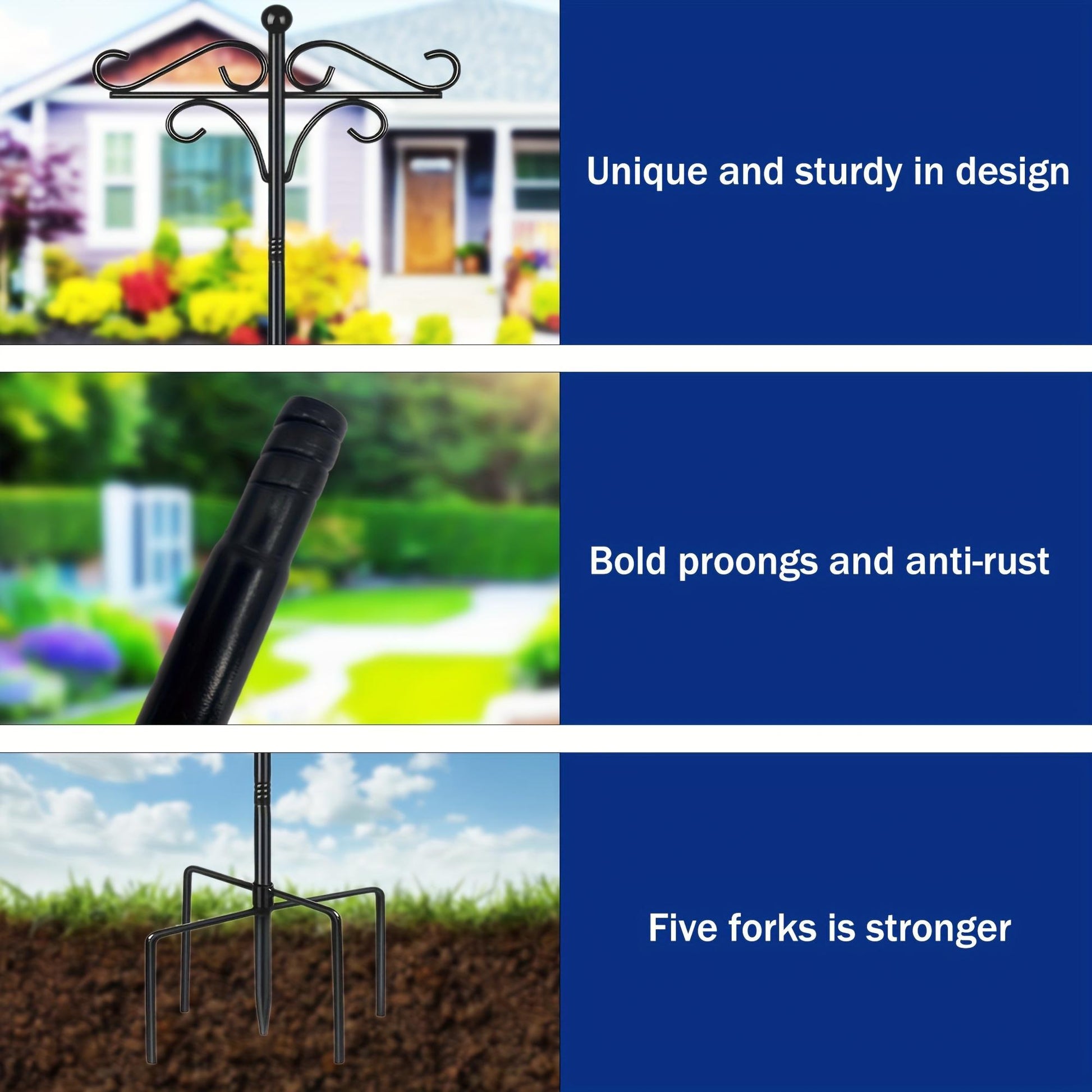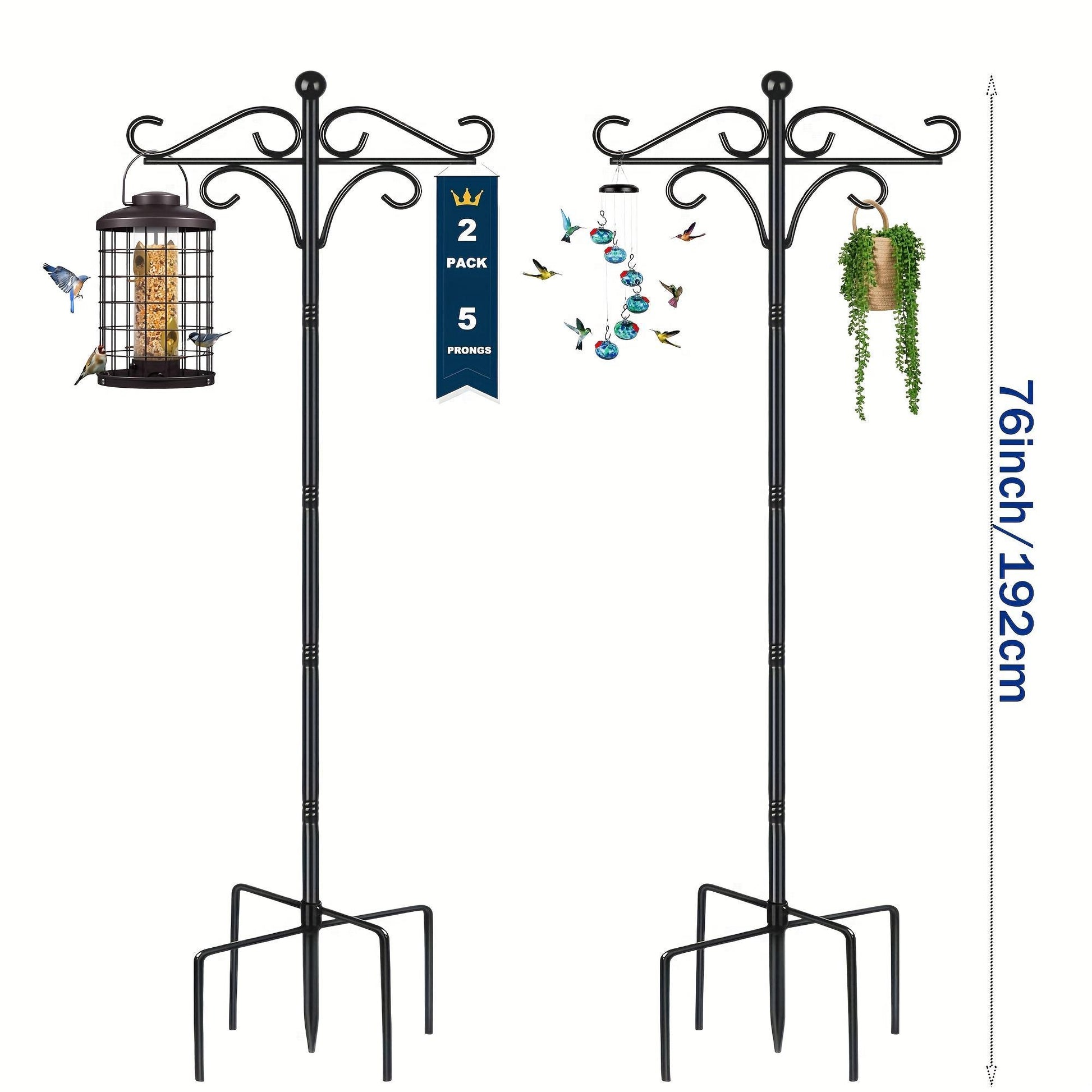 US Local Two Heavy Duty 76 Inch Outdoor Metal Shepherd's Hooks Traditional Double Bird Feeder Pole With Five Finger Adjustable Plant Hooks Suitable For Garden And Wedding Decoration Suitable For Bird Feeders P
