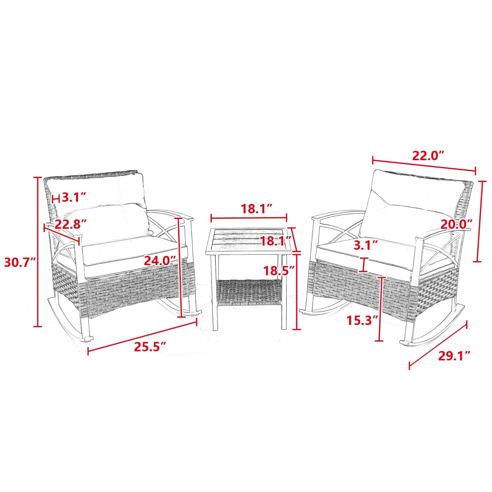 1 Table,2 Rocking chairs