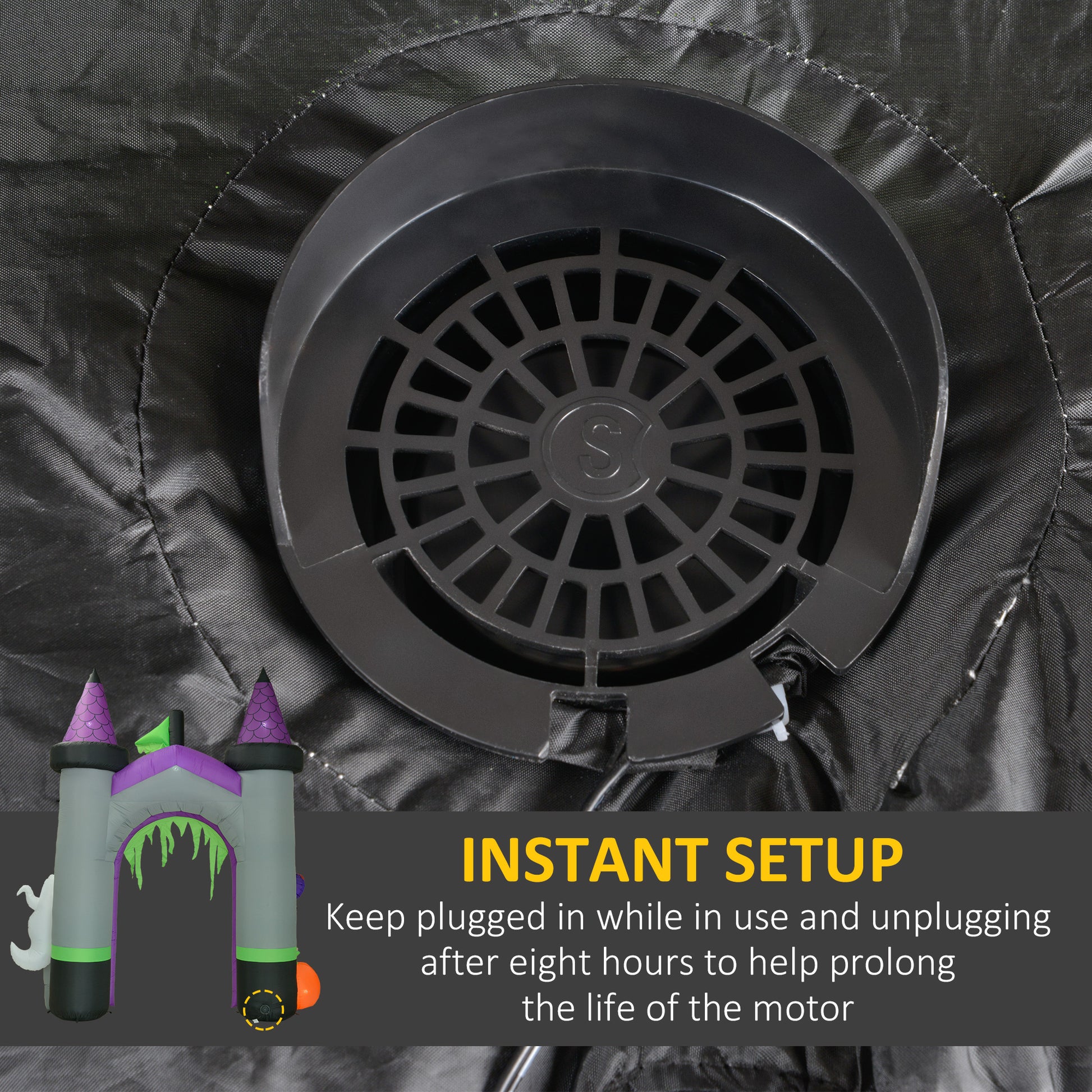 - Ensure the air blower is always connected to the power source to keep the product inflated, but not above eight hours a time for long motor service life
