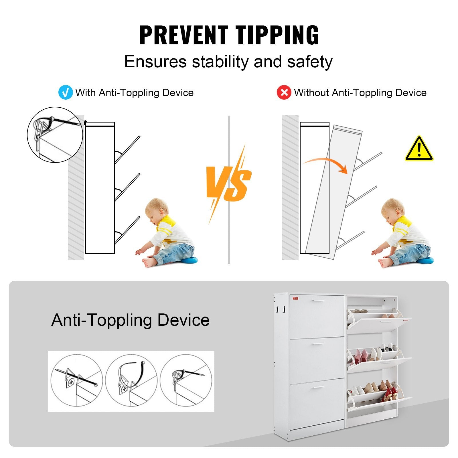 US Local VEVOR Shoe Cabinet With 3 Flip Drawers, Shoe Storage Cabinet For Entryway, Free Standing Shoe Storage Organizer With Side Hooks For Heels, Boots, Slippers In Hallway, Living Room