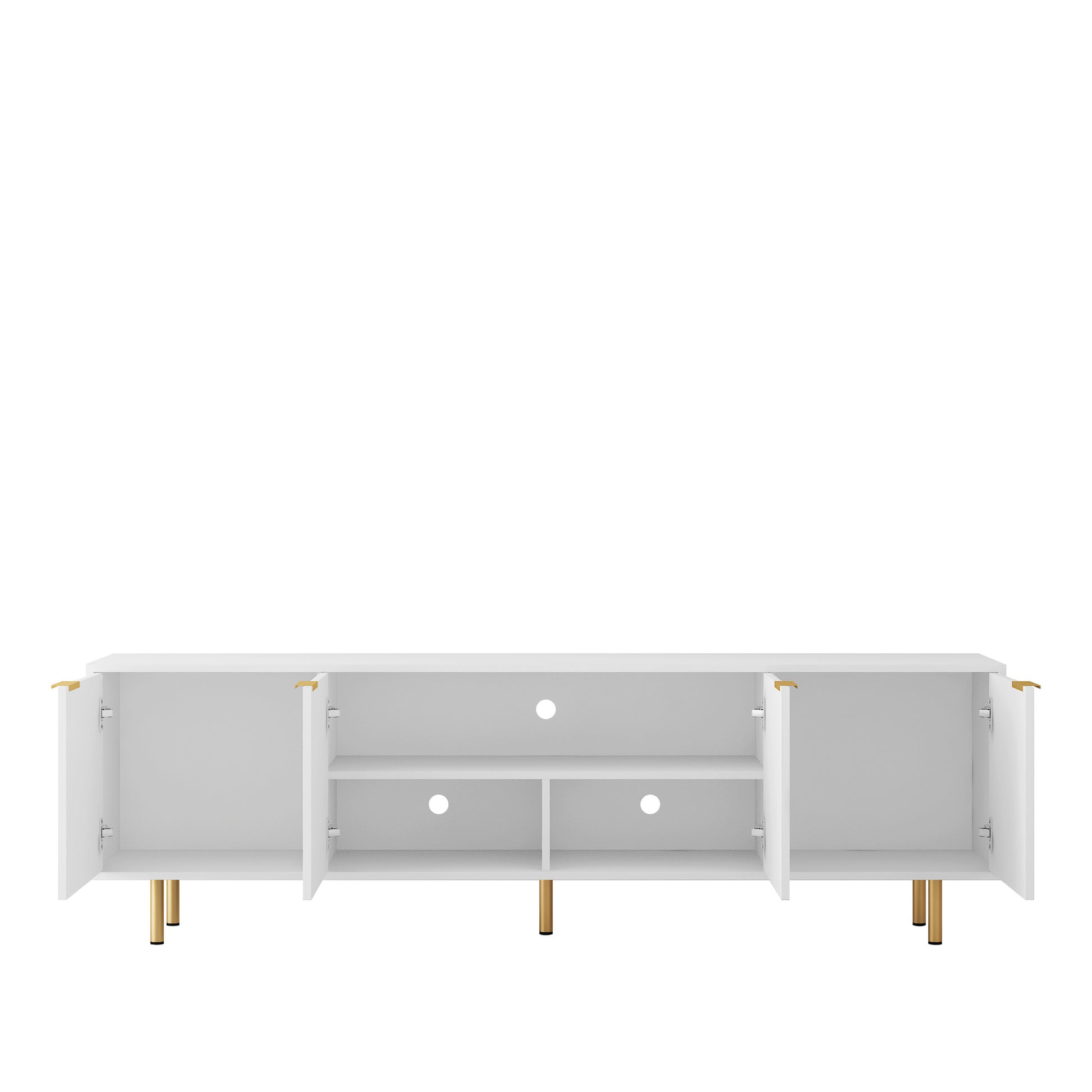 - VARIOUS STORAGE SPACES: The TV stand has 4 spacious cabinets for living room storage. The metal handles complement the gold legs.