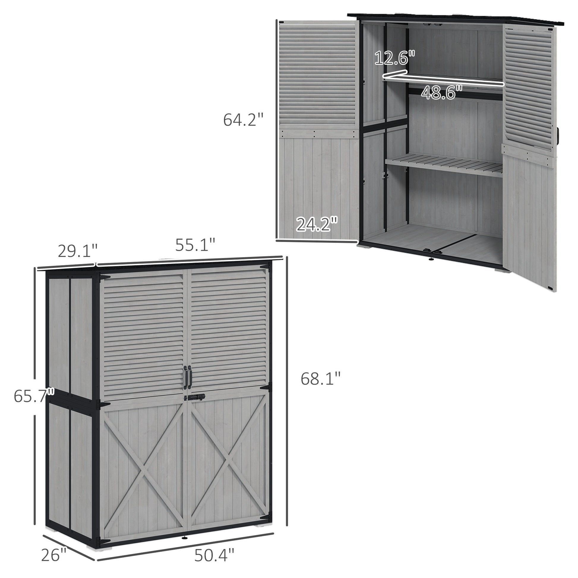 US Local Wood Storage Shed, Outdoor Garden Shed With Asphalt Roof, 2 Shelves, Lockable Doors And Adjustable Feet, Gray