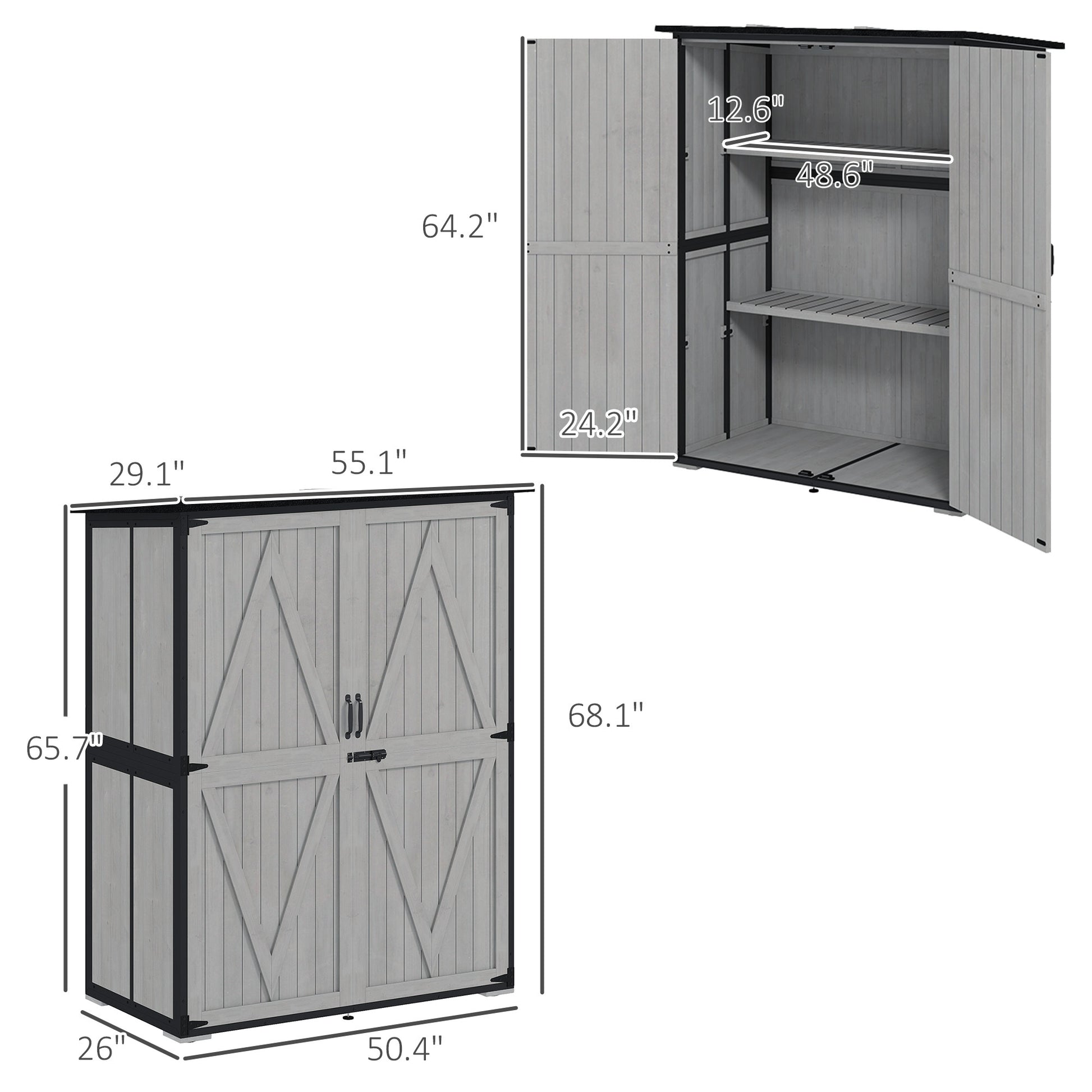 US Local Wood Storage Shed, Outdoor Garden Shed With Asphalt Roof, 2 Shelves, Lockable Doors And Adjustable Feet, Gray