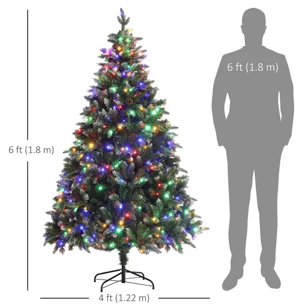 CA Local 6 ft Prelit Artificial Christmas Tree With Dual Colour LED Light, Hinged Xmas Tree For Home Office Holiday