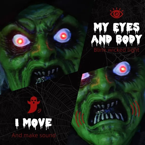 CA Local Outdoor Halloween Decoration Witch, Animated Prop Decor With Sound And Motion Activated, Light Up Eyes, Creepy Sound