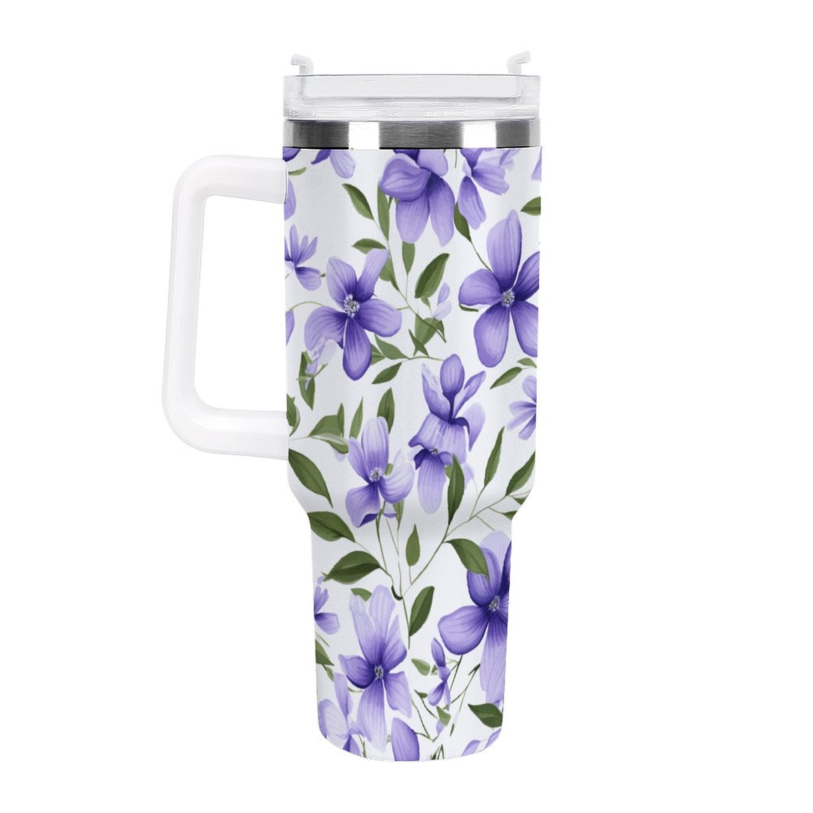 PHDT00037 POD US Local Tumbler 40 oz Large Capacity Car Cup Purple, Flowers, Green Leaves