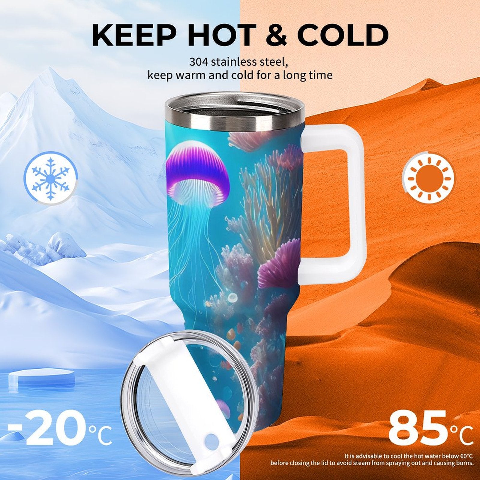 PHDT00040 POD US Local Tumbler 40 oz Large Capacity Car Cup Jellyfish, Dreams, Ocean