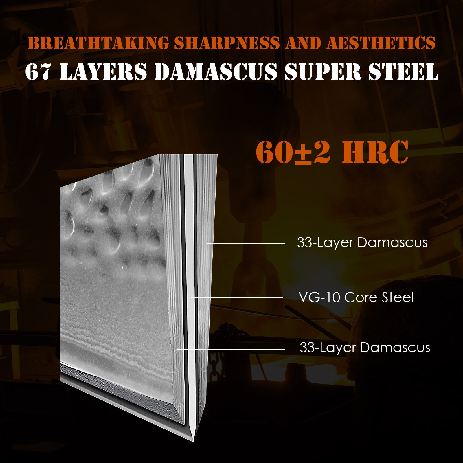 - ?SHARP SANTOKU KNIFE - Japanese santoku knife is made with Japanese VG-10 steel core, 67 layers real damascus steel for excellent edge retention. HRC 60¡À2, excellent rust resistance and wear resistance. The Santoku knife, also known as the Japanese chef's knife, has superior performance and is characterized by slicing, dicing, and chopping.