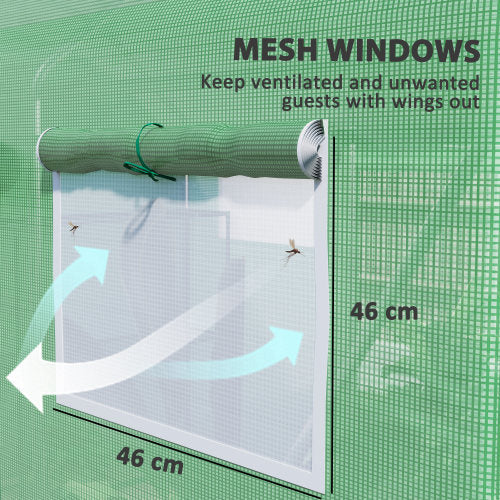 - Multiple doors and windows: A spacious design to hold plenty of plants and flowers. Three roll-up doors for easy access, with six mesh windows to allow fresh air inside.