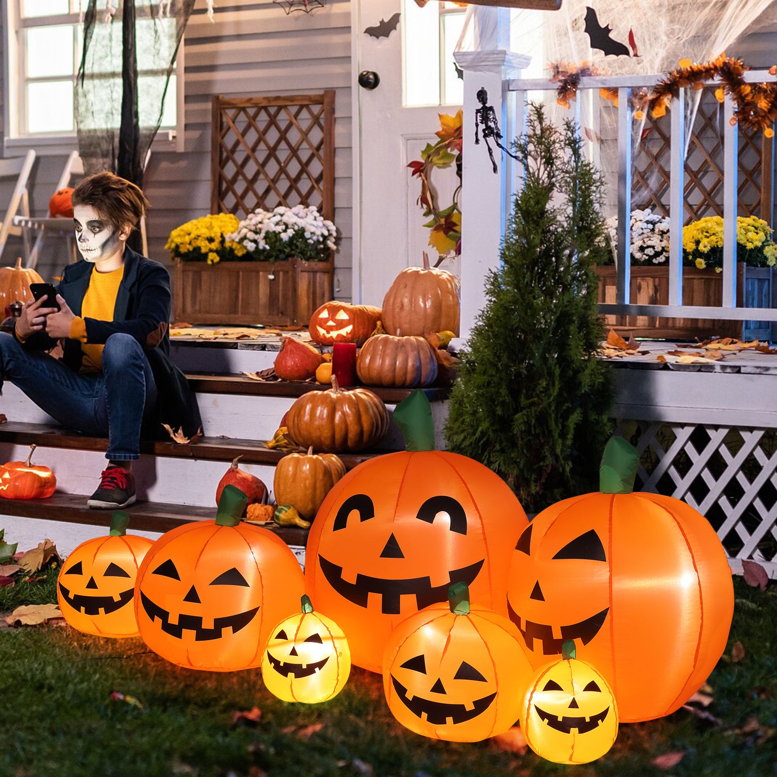 US Local 7ft Classic 7pcs LED String Lights 7pcs Pumpkin Inflatable Halloween Decoration
