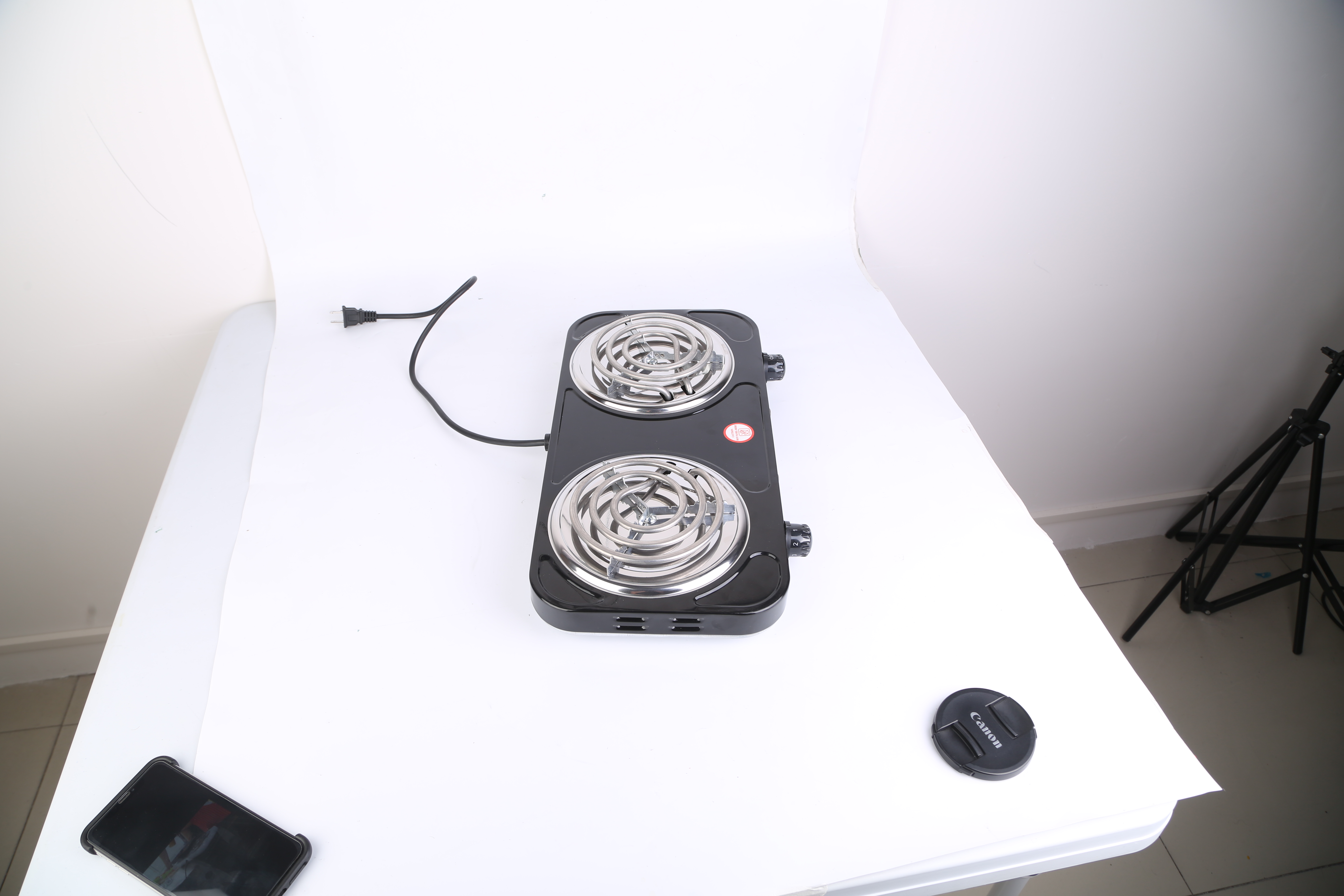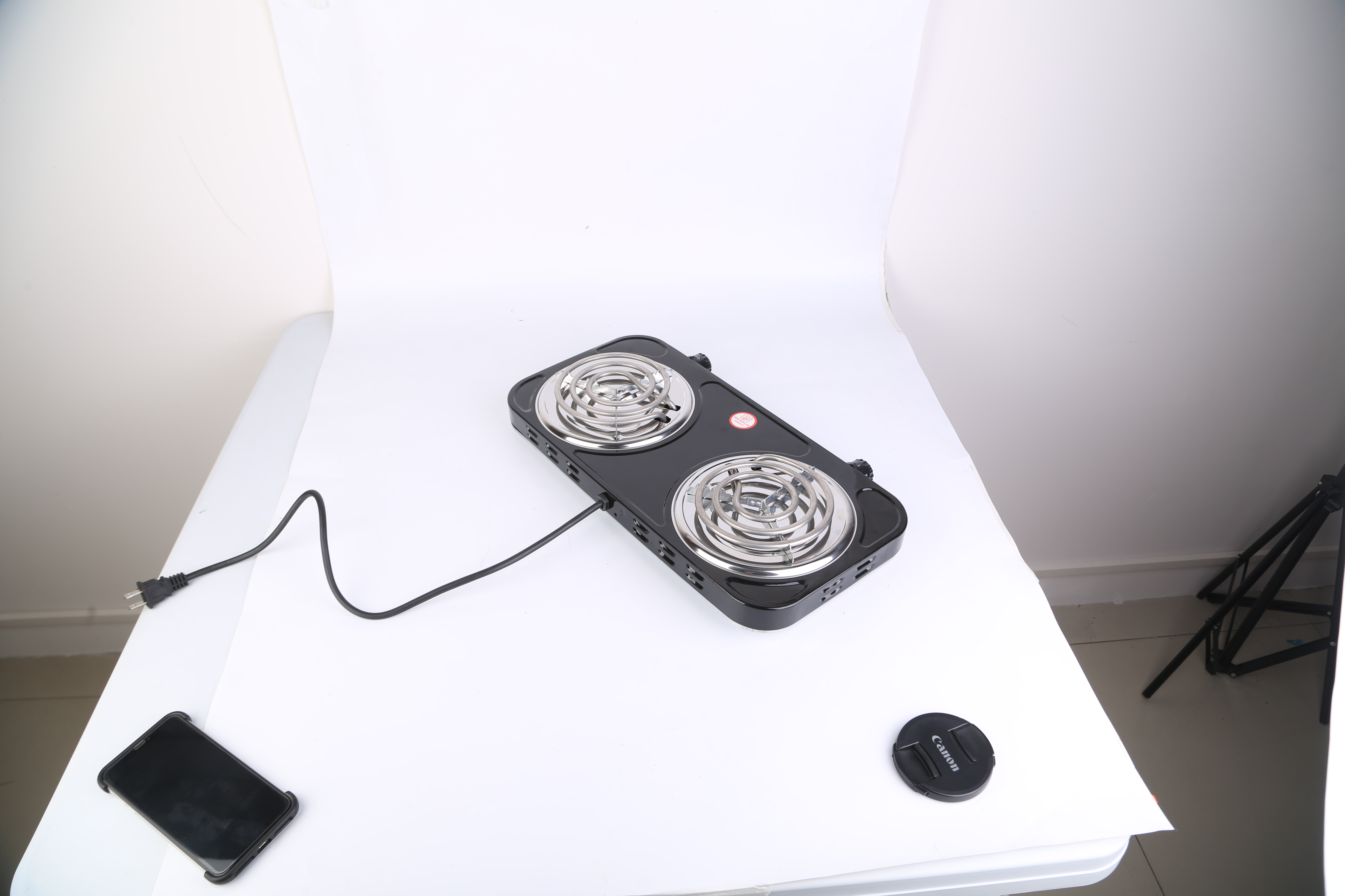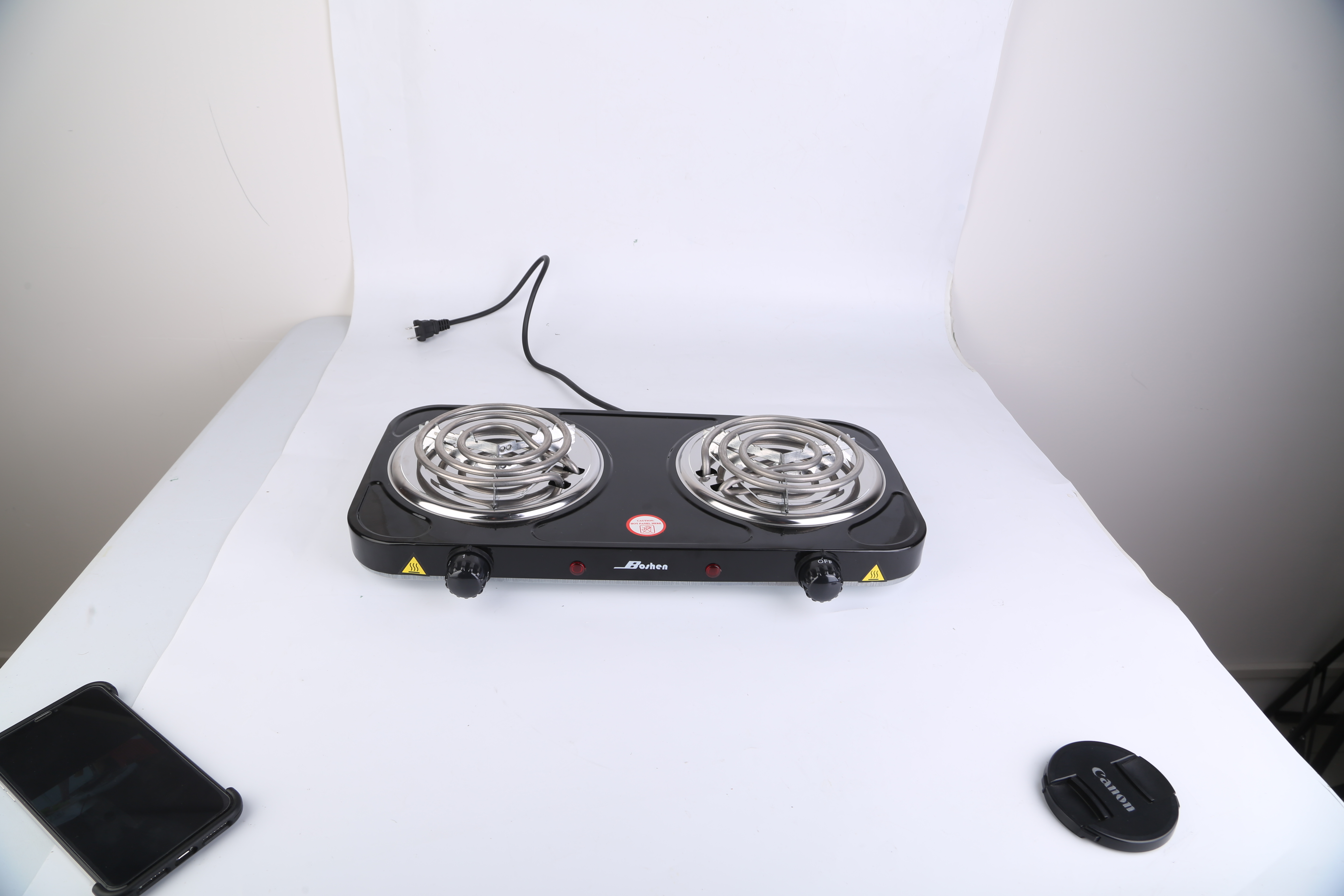 2 Color Options -- 1Pc 2000W Electric Double Burner Portable Coil Heating Hot Plate Stove Countertop RV Hotplate With Non Slip Rubber Feet 5 Temperature Adjustments