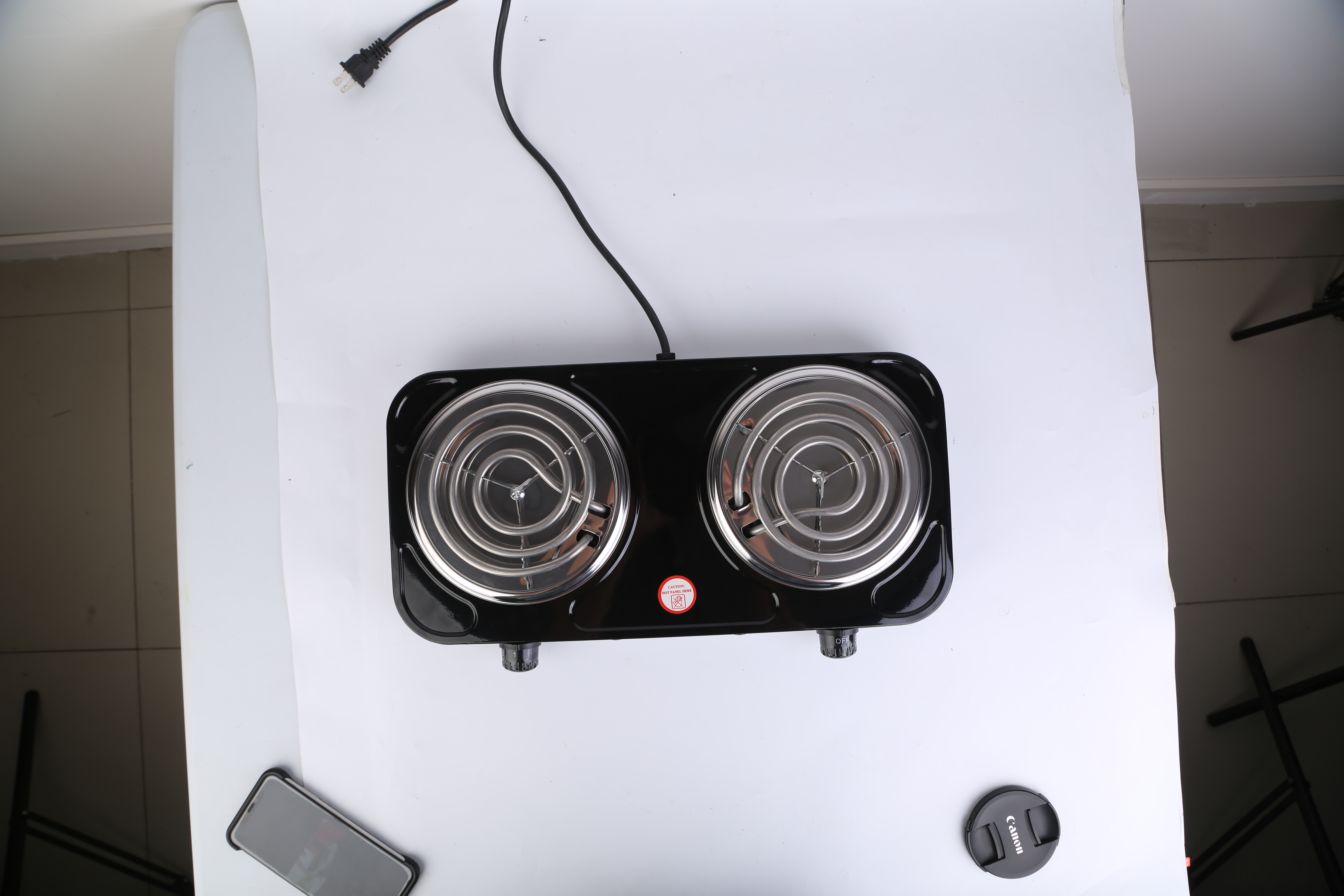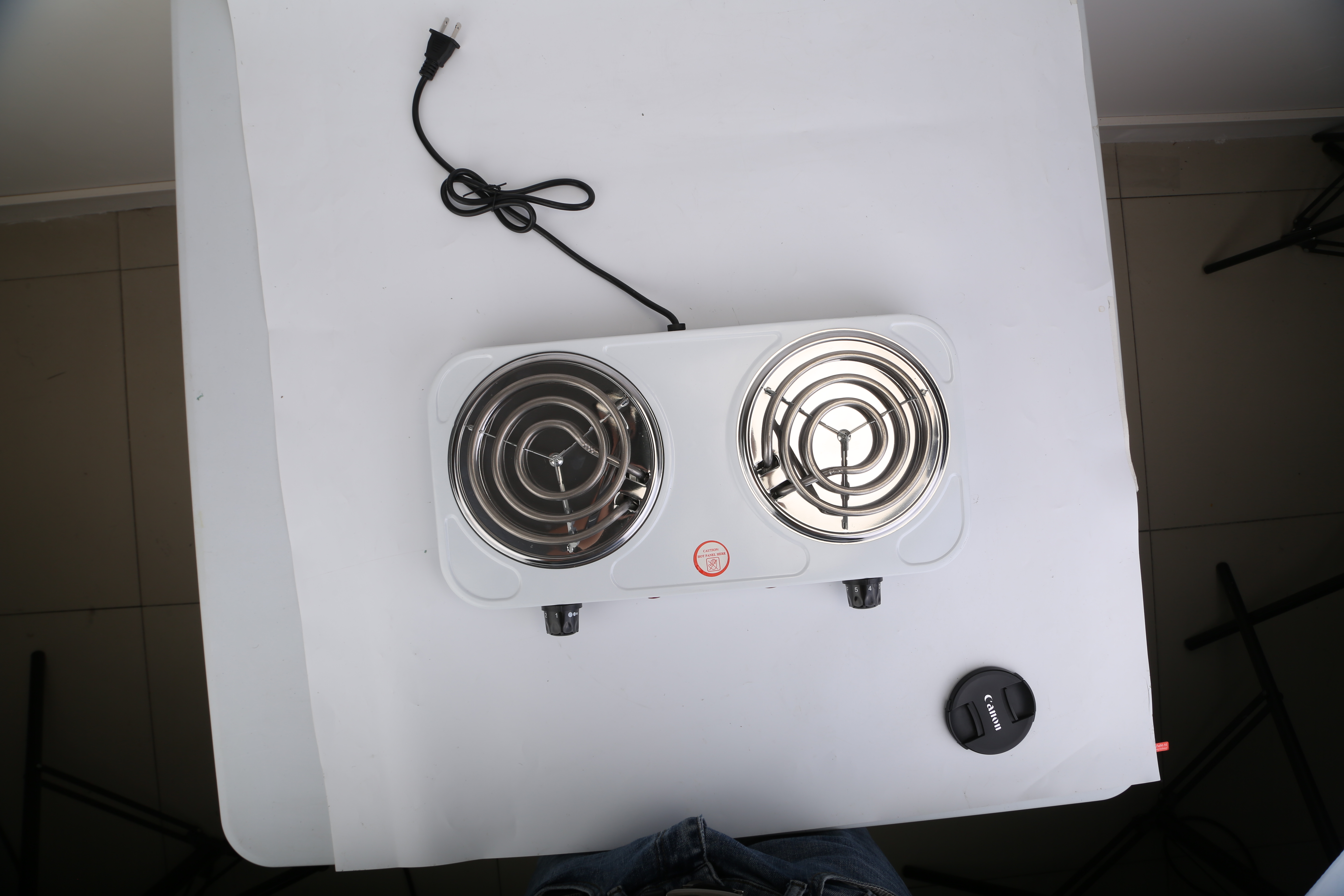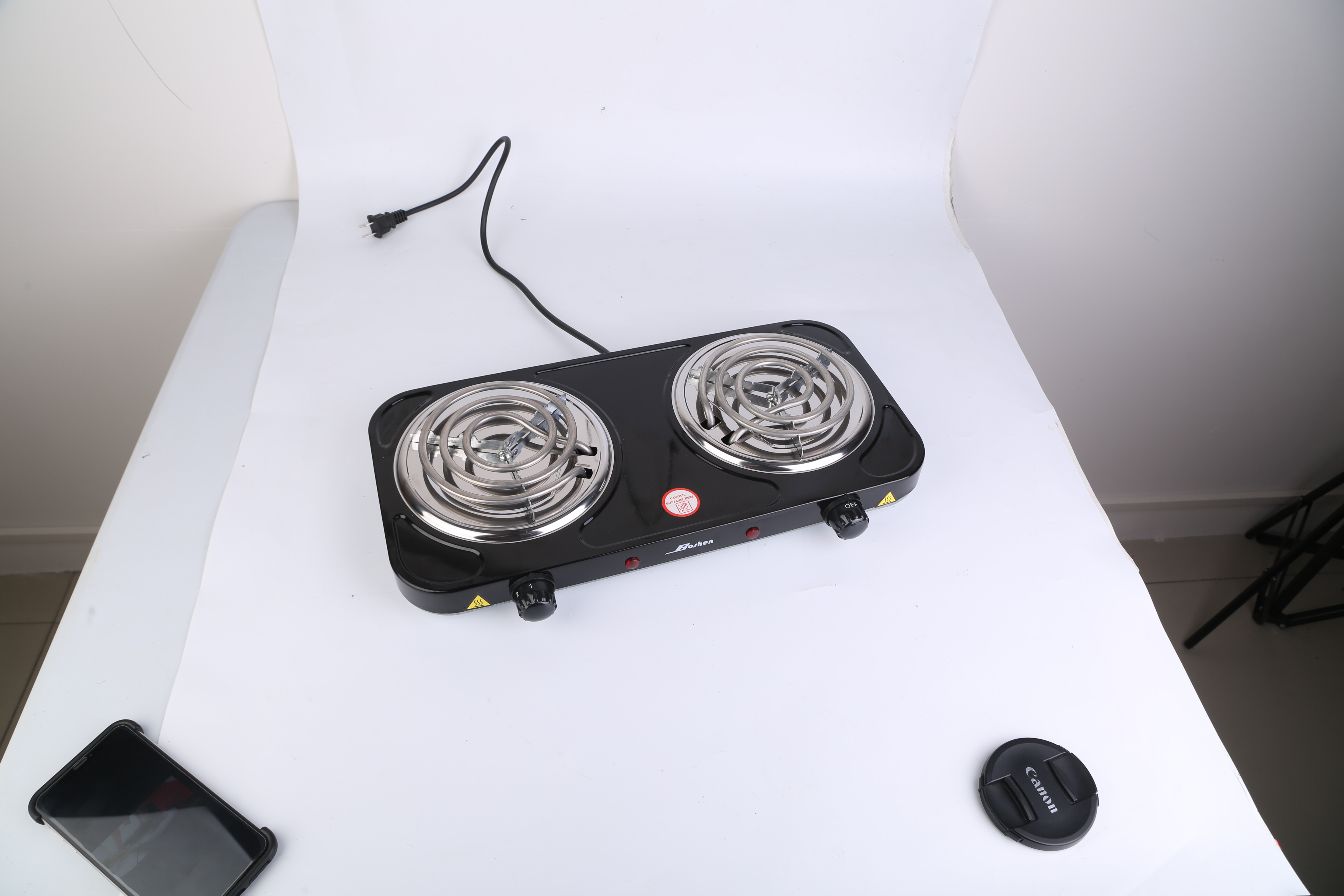 2 Color Options -- 1Pc 2000W Electric Double Burner Portable Coil Heating Hot Plate Stove Countertop RV Hotplate With Non Slip Rubber Feet 5 Temperature Adjustments