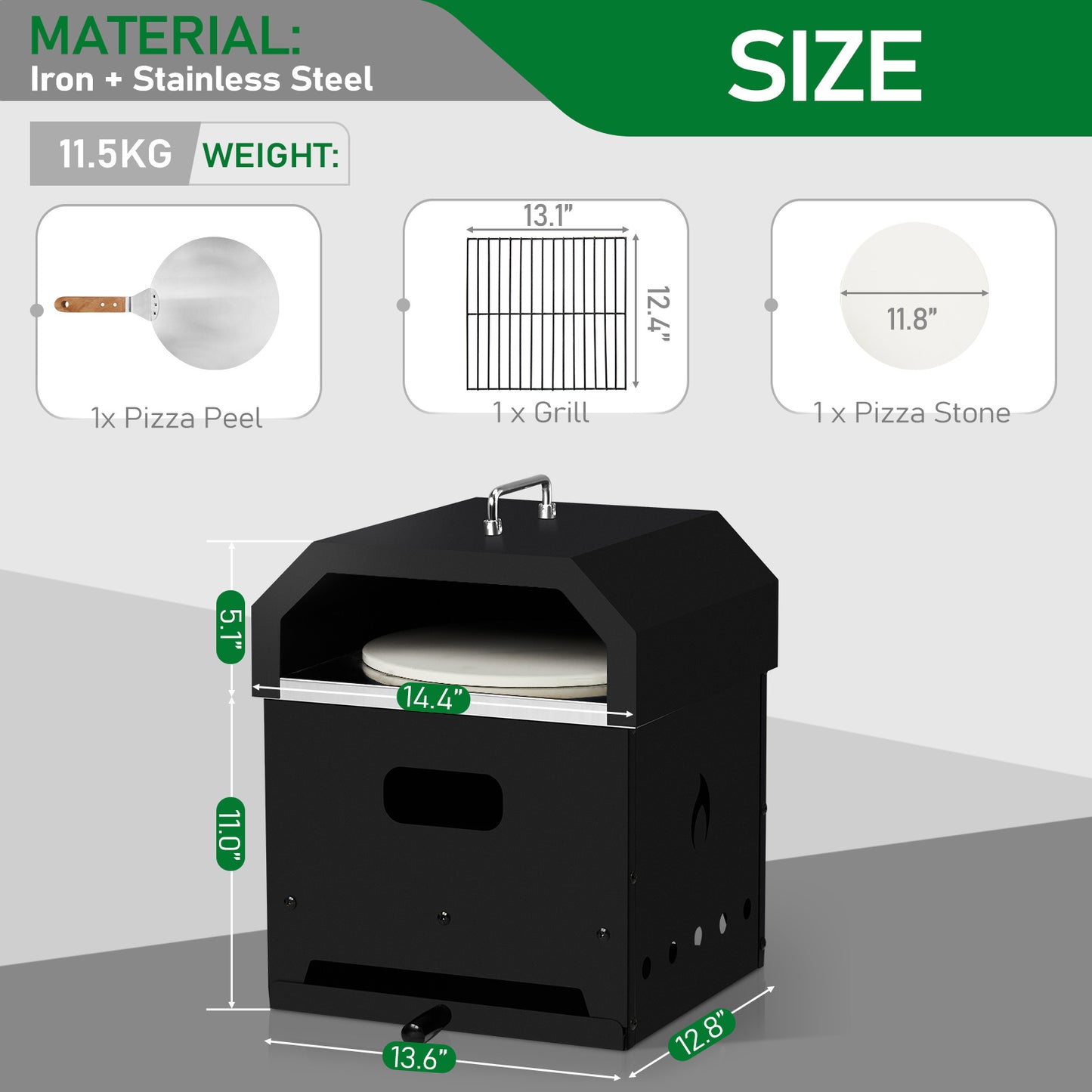 4. Portable Design: Equipped with side and top handles, this oven is easy to carry and move without risk of burns. Whether fueled by wood, pellets, or charcoal, it's simple to set up and start cooking wherever your adventures take you.