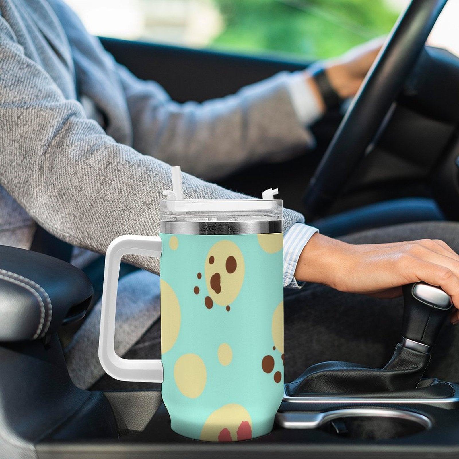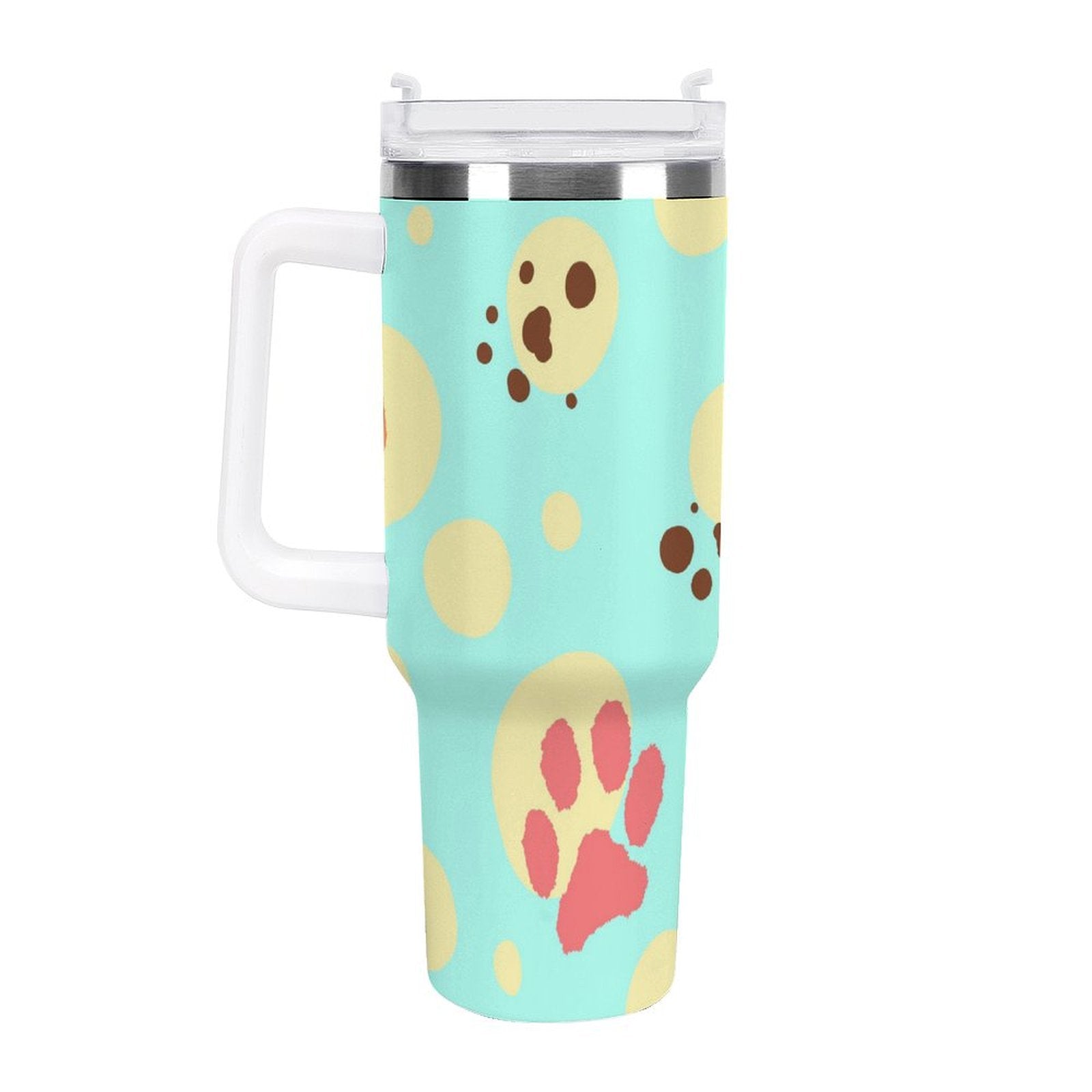 PHDT00209 POD US Local Tumbler 40 oz Large Capacity Car Cup Cat footprint cyan yellow polka Dot