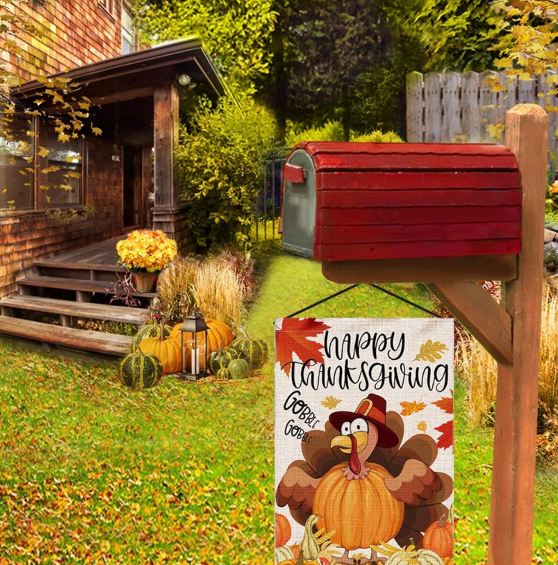 Thanksgiving Garden Banner Autumn Turkey Double-sided Linen