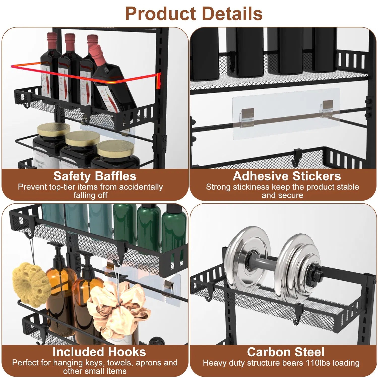 Easy To Install: Offering 2 installation methods, either choose to directly hang on this over the door pantry organizer without drilling or holes, or you can use the included screws to install this pantry door organizer on the wall. Included 2 adhesive sticker provides enhanced stability and security. Package includes detailed instruction and complete accessories, you can quickly install this 6-tier over door organizer in about 10 minutes.