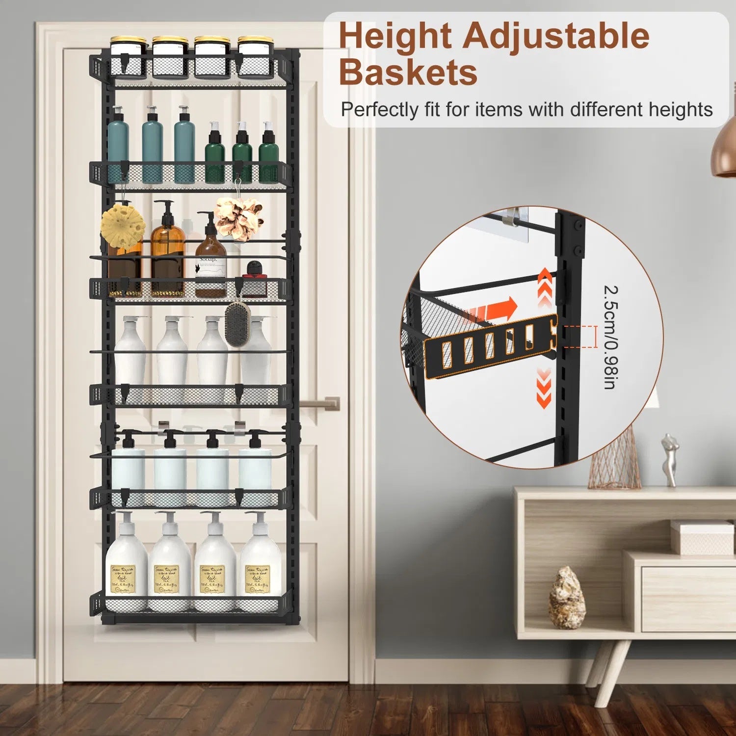 Multi-Purpose Use: Width adjustable door hook perfectly fits for most standard door thickness between 2.7-6cm/1.06-2.36in. A multi-purpose over the door storage organizer for living room, bathroom, bedroom, kitchen, closet. Suitable for storing bathing products, cosmetics, spice bottles, dry goods, snacks, cans, sundries.
