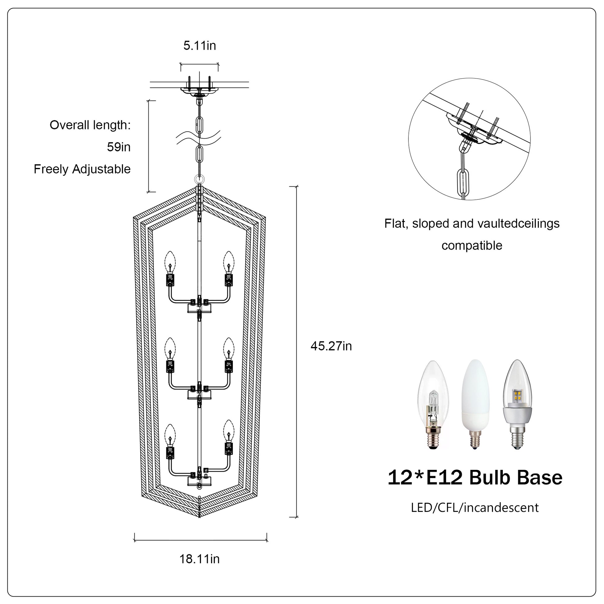 - ¡¾Bulb Type¡¿ The kitchen light fixtures is equipped with 12*E12 socket base. The recommended maximum power of each bulb is 40W.