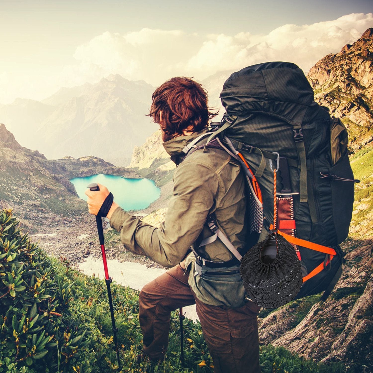 - * Portable Design *: All the cooking wares can be stored in a small mesh bag,space-saving and accessible. You can hang it on the backpack with the attached carabiner. Just take it anywhere you go.