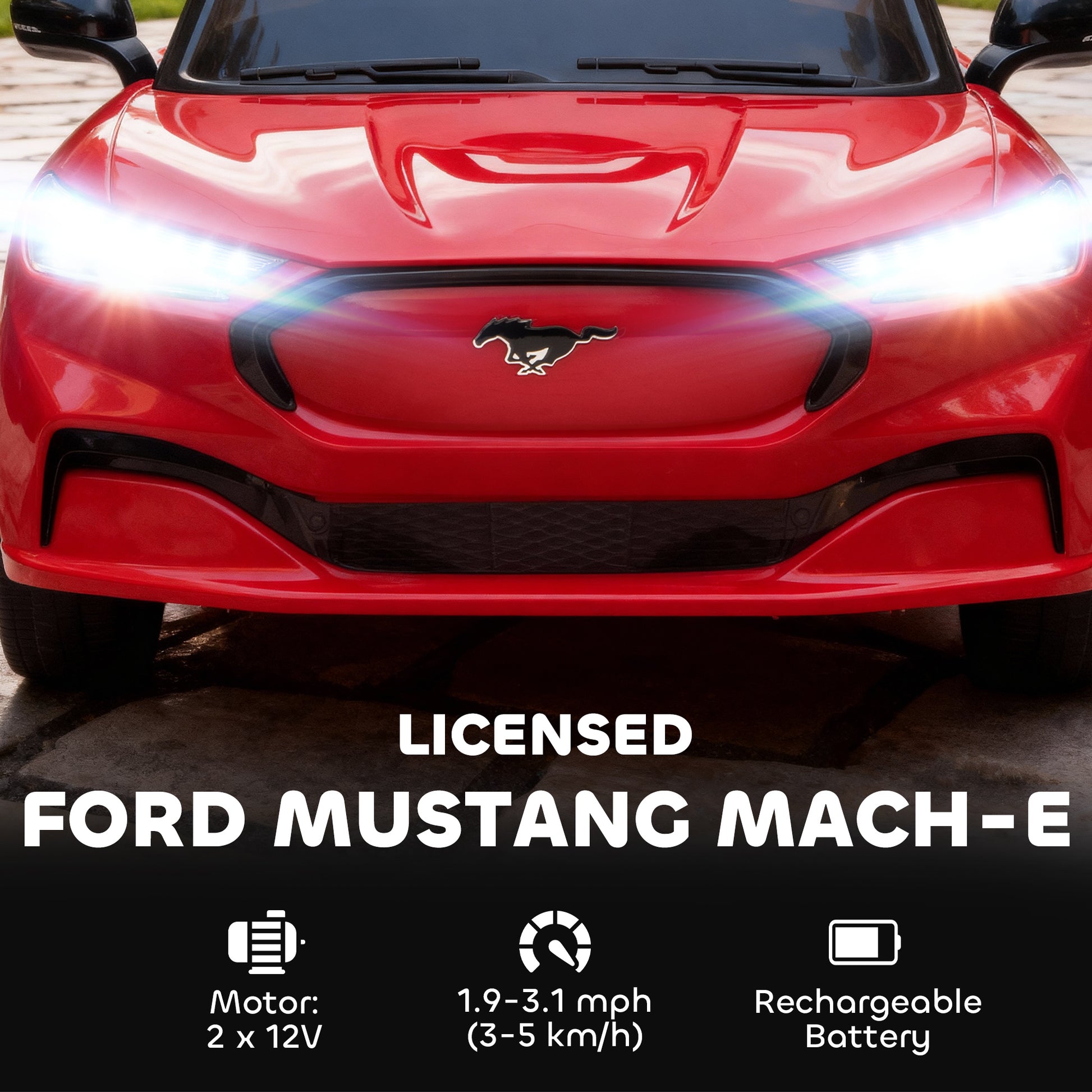The Qaba kids' ride-on car gives your child the excitement of driving while also providing safety and peace of mind for parents. Its licensed design captures the look of the Ford Mustang Mach-E electric car, while the dual motors give little drivers plenty of power to play with. Two driving control options mean you can guide them safely with the remote at first, then watch with pride as they enjoy the thrill of driving independently. A great gift for 3 to 8-year-old drivers. Features: - Officially licensed Ford Mustang Mach-E is a stylish gift for kids - Dual 12V motors provide a thrilling ride with speeds up to 3.1 mph - Features manual and remote modes for parent-child interactive fun and safety - Soft start and rear suspension provides a smooth and comfortable ride - Built-in music and LED lights provide an immersive driving experience - Stable PP and steel frame safely supports up to 66 lbs. for lasting use - Power display shows battery life, offering 50 minutes of fun per charge - Assembly required Specification: - Color: Red - Material: PP, Steel - Overall Dimensions: 36.2" L x 21.7" W x 17.3" H - Seat Size: 13.4" W x 7.5" D x 9.4" H - Wheel Size: 7.5" Dia. - Battery: 12V 4.5AH - Remote Control Range: 65.6' - Charging Time: 8¨C10 hours (initial), 10¨C12 hours (regular) - Run Time: 50 minutes - Weight capacity: 66 lbs. - Approved Age: 3¨C8 years - Recommended Age: 3¨C5 years - License Plate Size: 3.9" L x 1.4" W - Item Label: 370-455V80RD Package Includes: - 1 x Electric Ride-on Car - 1 x Remote Control - 1 x Manual The Qaba kids' ride-on car gives your child the excitement of driving while also providing safety and peace of mind for parents. for lasting use - Power display shows battery life, offering 50 minutes of fun per charge - Assembly required Specification: - Color: Pink - Material: PP, Steel - Overall Dimensions: 36.2" L x 21.7" W x 17.3" H - Seat Size: 13.4" W x 7.5" D x 9.4" H - Wheel Size: 7.5" Dia. - Approved Age: 3¨C8 years - Recommended Age: 3¨C5 years - License Plate Size: 3.9" L x 1.4" W - Item Label: 370-455V80PK Package Includes: - 1 x Electric Ride-on Car - 1 x Remote Control - 1 x Manual The Qaba kids' ride-on car gives your child the excitement of driving while also providing safety and peace of mind for parents. for lasting use - Power display shows battery life, offering 50 minutes of fun per charge - Assembly required Specification: - Color: Black - Material: PP, Steel - Overall Dimensions: 36.2" L x 21.7" W x 17.3" H - Seat Size: 13.4" W x 7.5" D x 9.4" H - Wheel Size: 7.5" Dia. - Approved Age: 3¨C8 years - Recommended Age: 3¨C5 years - License Plate Size: 3.9" L x 1.4" W - Item Label: 370-455V80BK Package Includes: - 1 x Electric Ride-on Car - 1 x Remote Control - 1 x Manual.