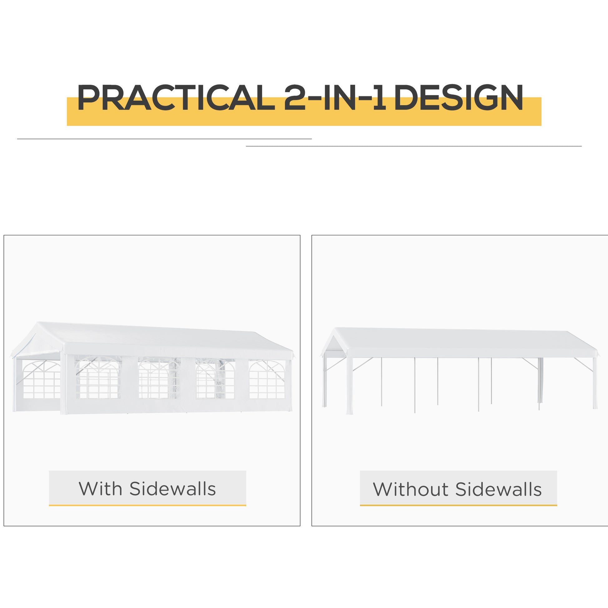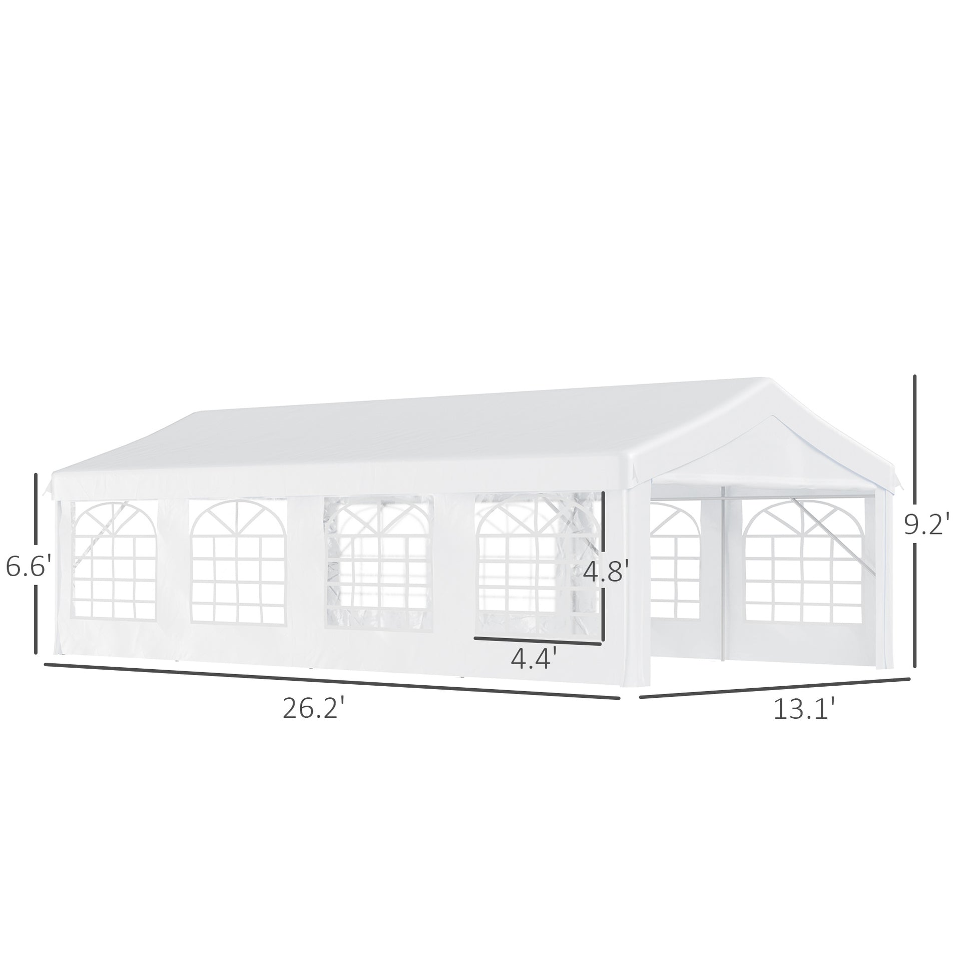 US Local 13' X 26' Heavy-Duty Outdoor Carport Party Event Tent, Patio Gazebo Canopy Pavilion With 4 Sidewalls & 8 Windows, White