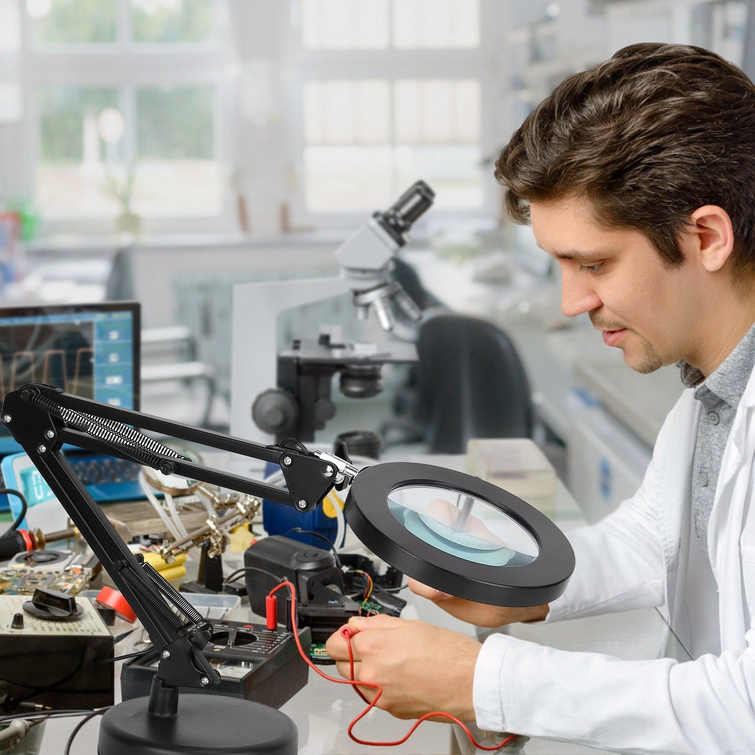US Local 1Pack 2 In 1 LED Magnifier Desk Lamp 8x Magnifying Glass With Light Swing Arm Desk Table Light USB Reading Lamp With Clamp Stand 10 Brightness 3 Modes