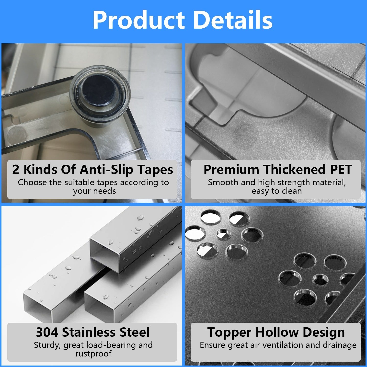 - *Easy Installation*: No tools required,just use stainless steel pipes to connect the upper basket with base and insert the drawer tray,instant assembly within minutes. Also offering multiple anti-slip tapes to add more stability and security.