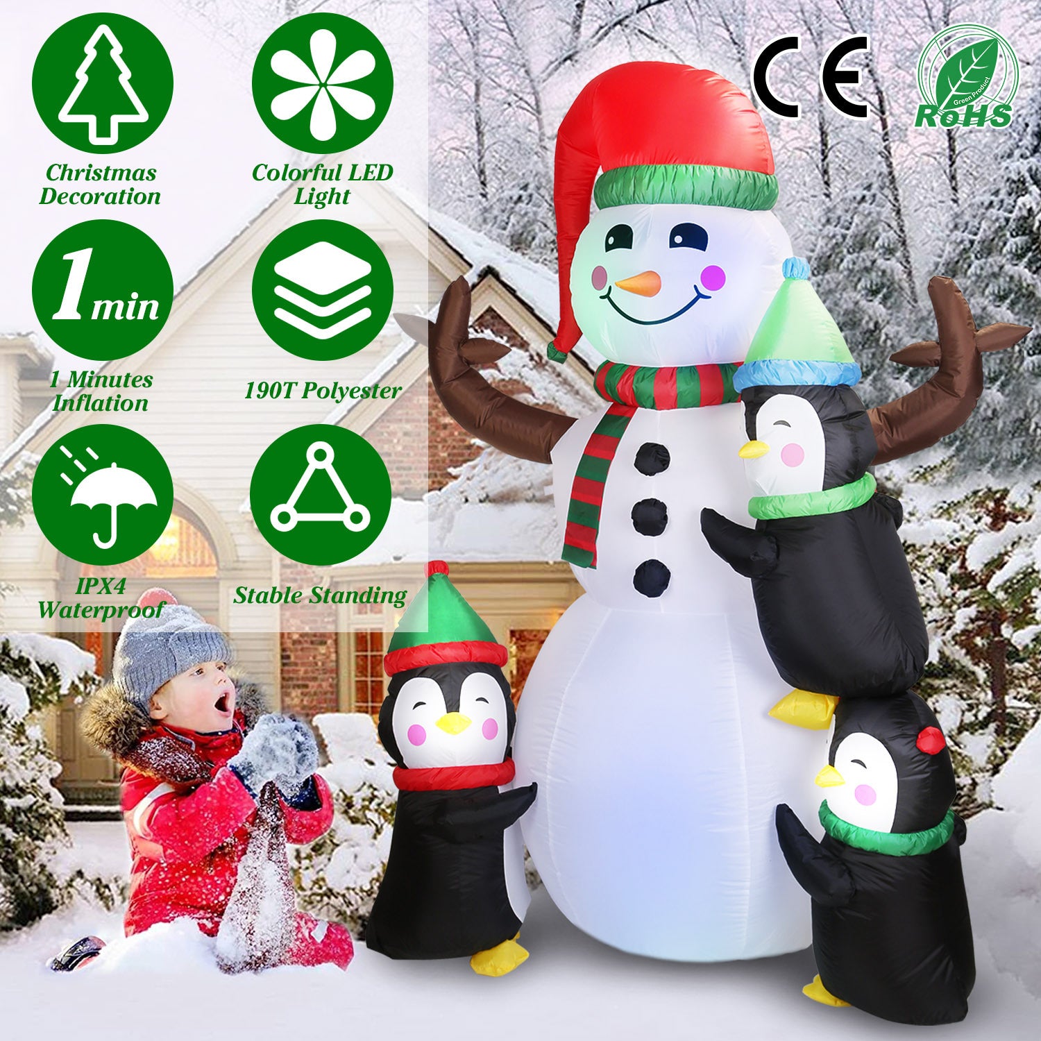 - *Cute Christmas Decoration*: A perfect outdoor decoration in this Christmas!Compose of one large snowman and 3 cute penguins,this 5.9FT height inflatable decoration will definitely attract your friends and neighbors¡¯ attention,add joyful festival atmosphere and create unforgotten memory.