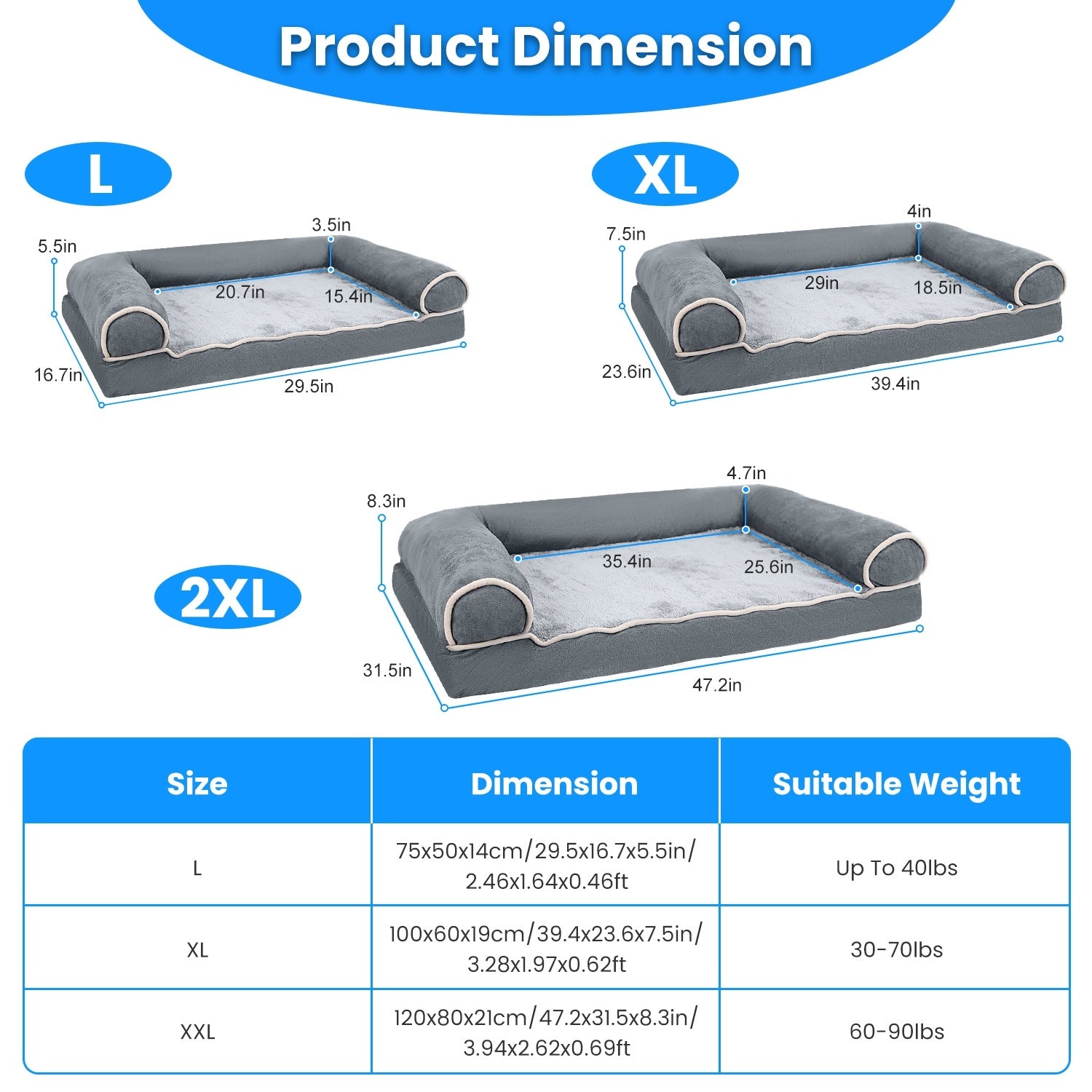 - *L/XL/2XL Size Options*: L/XL/2XL Size meets the demand for medium/large dogs and every stage of a dog's life(whelping,growing,adult or elder). Can be used as a sleeping mattress,travel pets pad,pet pillow,floor dog mat.