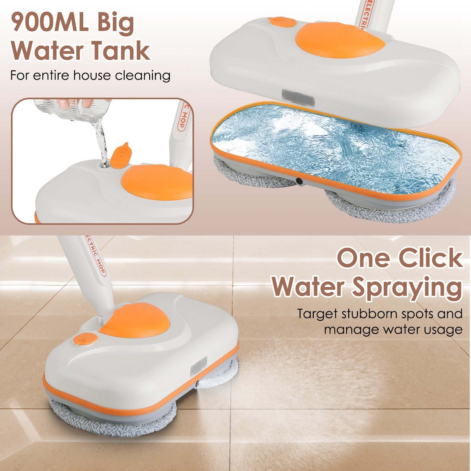 - *900ML Water Tank& One Click Spraying*: Our cordless electric mop is built in 900ML big water tank for wet cleaning. Just a simple button press,you can control the spray to target stubborn spots and manage water usage,ensuring ensures optimal cleaning without mess or waste.