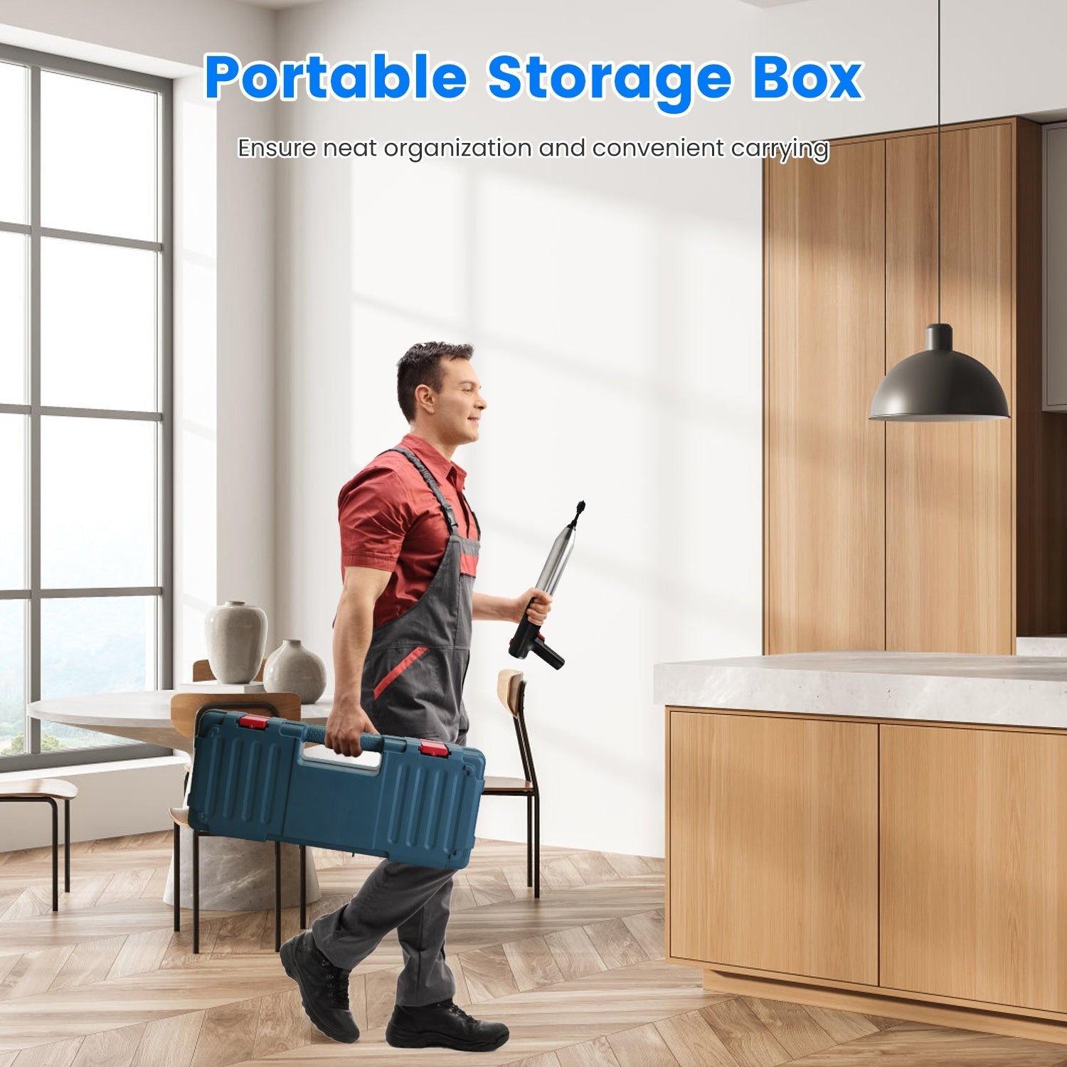 - *Easy Operation*: Simply assemble the according head,press the top button to inflate,when the pressure reaches the proper valve,then press the trigger to deflate to finish unclogging job,saving you time and money!A must-have home tool in your daily life. Also comes with a portable storage box for neat organization and convenient carrying.